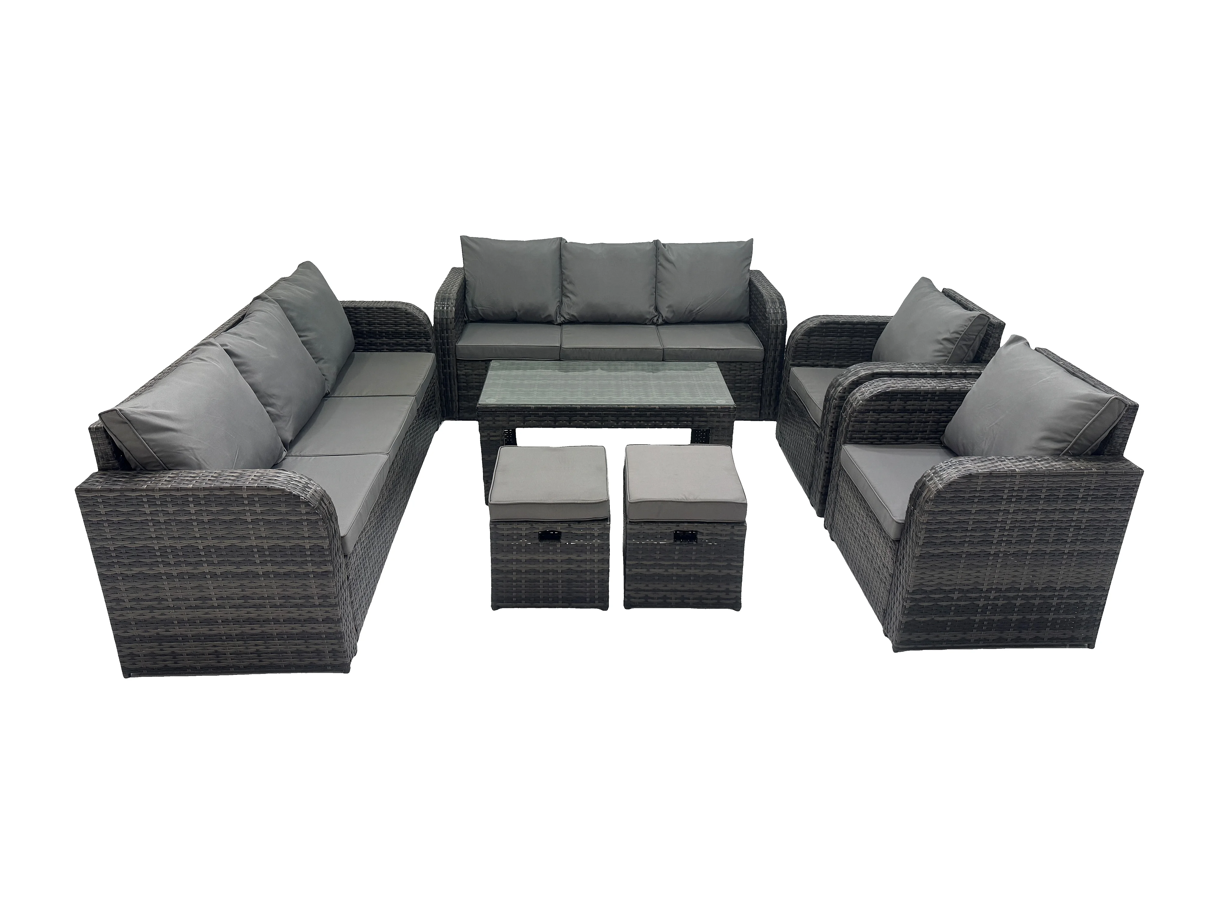 Ensembles de meubles de jardin 10 places Ensemble de canapés en rotin avec Table basse rectangulaire Chaise inclinable 2 Petits tabourets
