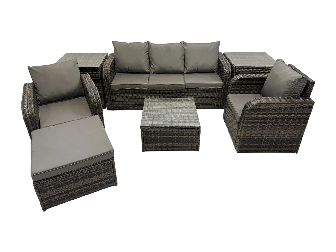 Ensembles de meubles de jardin 6 Pièces Canapés de terrasse avec Chaise inclinable Canapé 3 places 2 Tables d'appoint Grand tabouret Gris foncé mixte