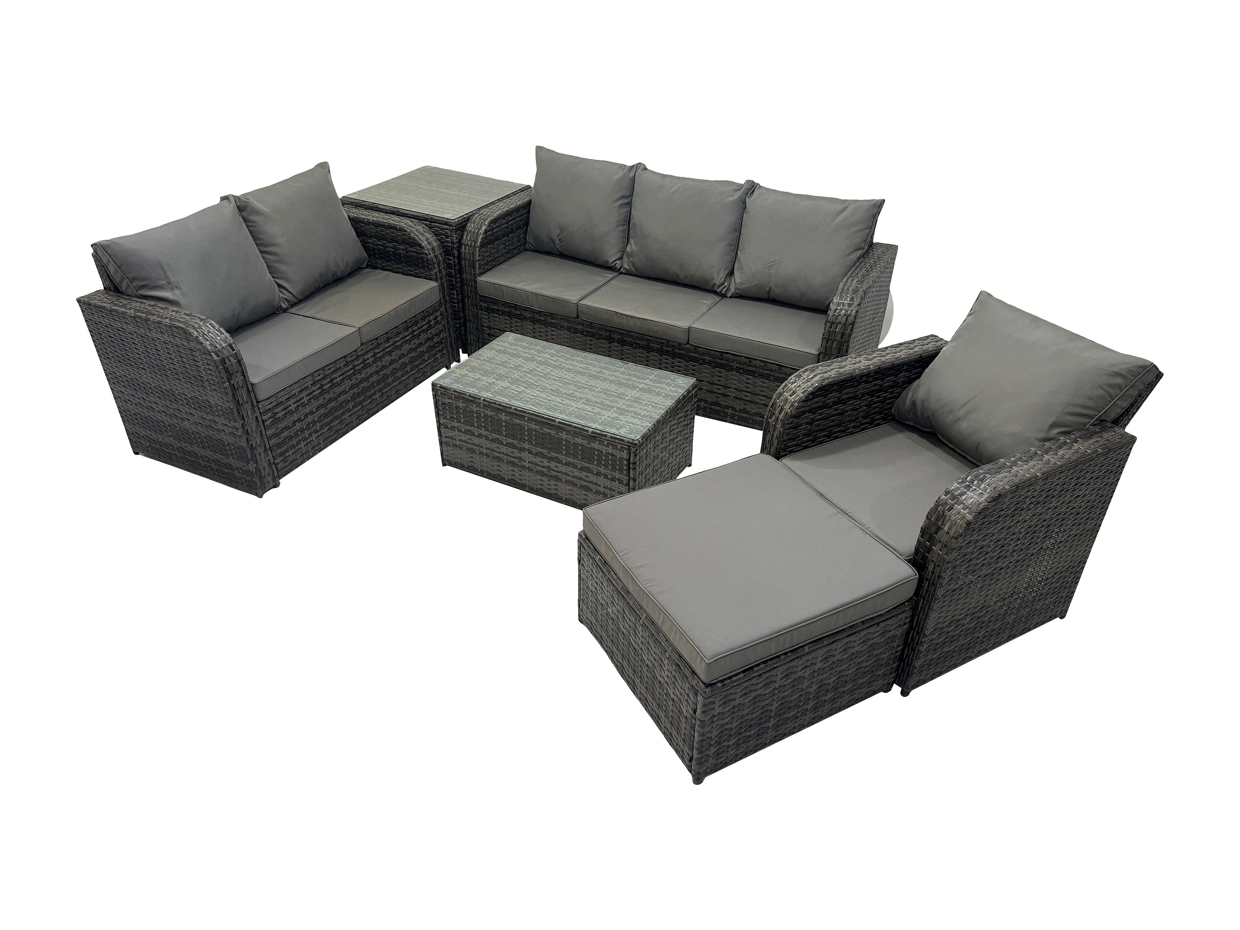 Ensembles de meubles de jardin 7 places Ensemble de canapés en rotin avec Table basse Chaise inclinable Canapé 3 places Grand tabouret Table d'appoint