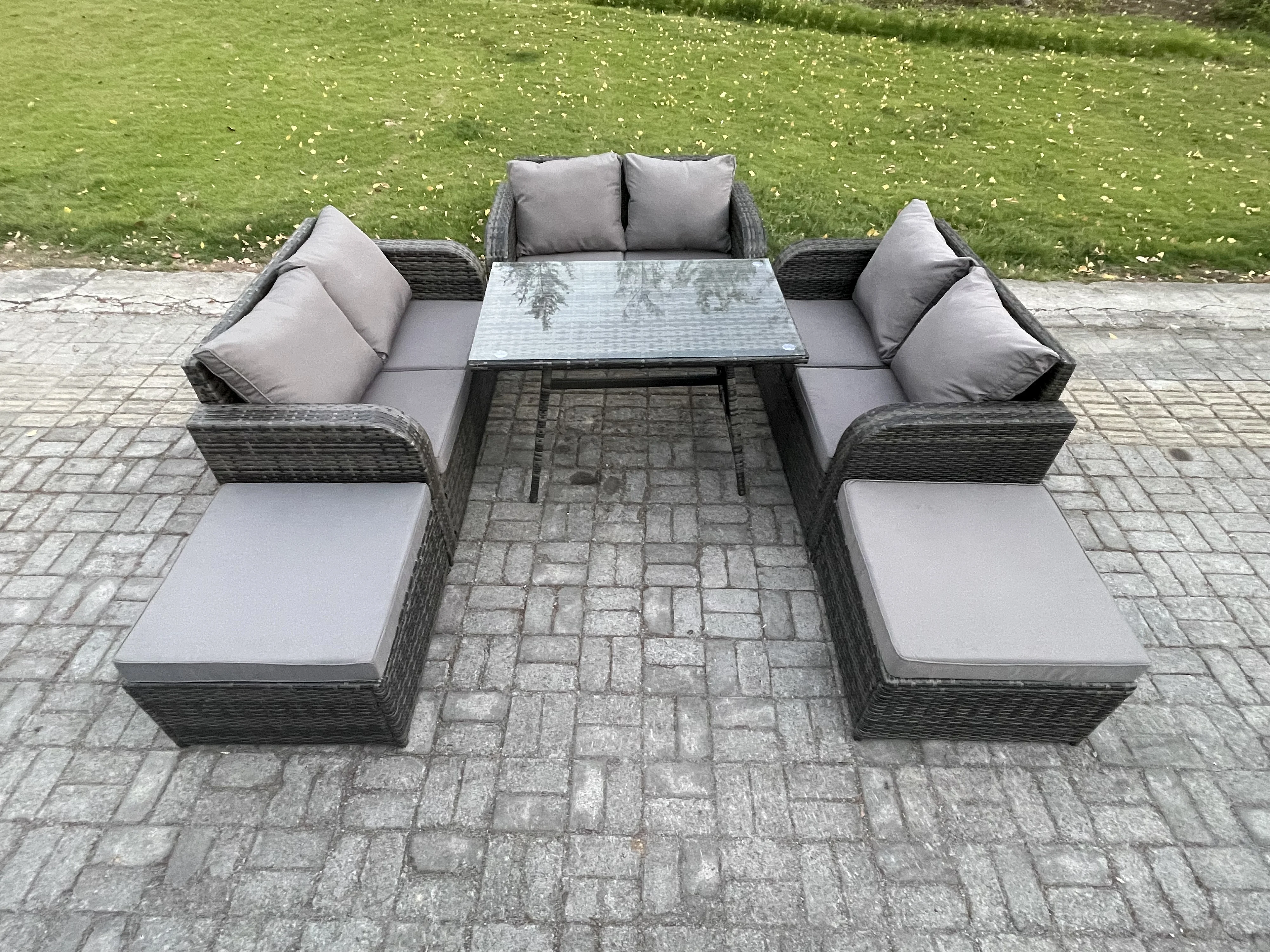 Ensembles de meubles de jardin 8 places avec 2 Grand tabourets Gris foncé mixte