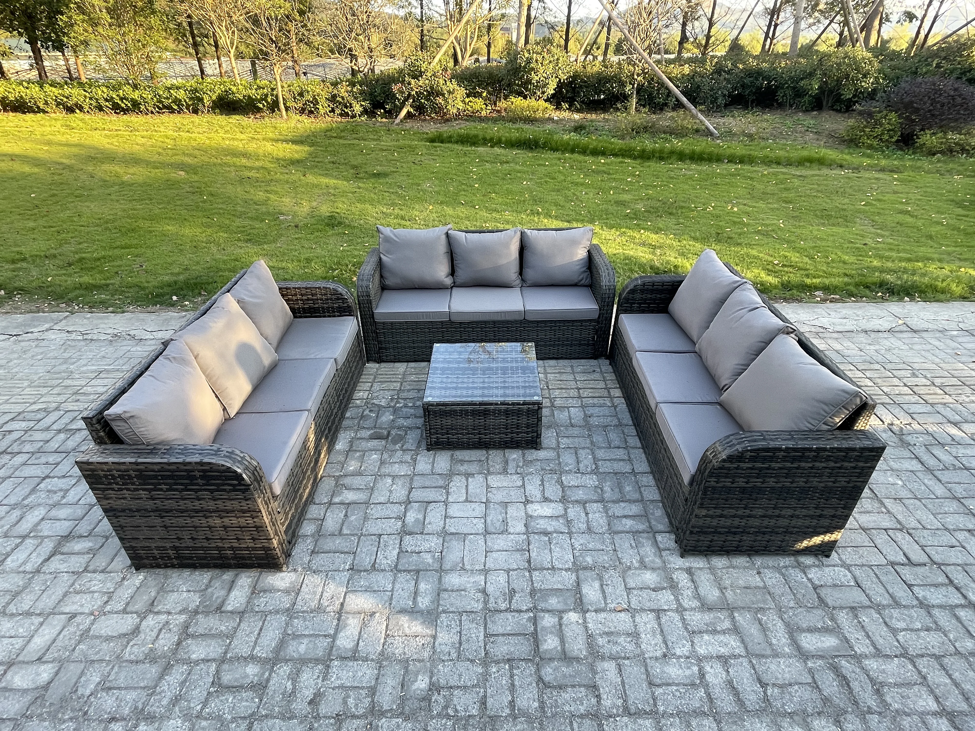 Ensembles de meubles de jardin 9 places Ensemble de canapés en rotin avec Table basse carrée