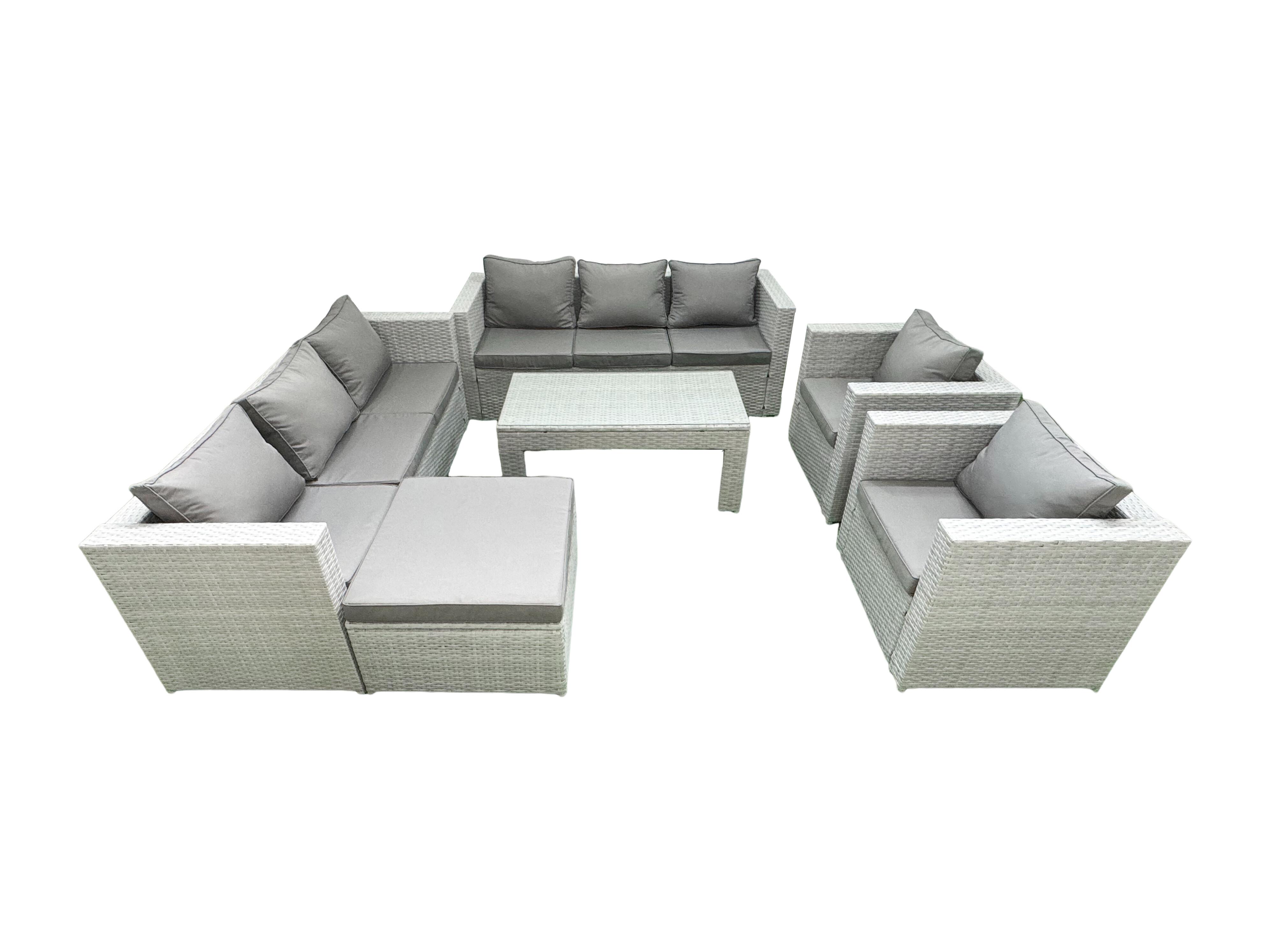 Ensembles de meubles d'extérieur avec 2 Fauteuil Table basse oblongue Grand tabouret Gris clair mixte