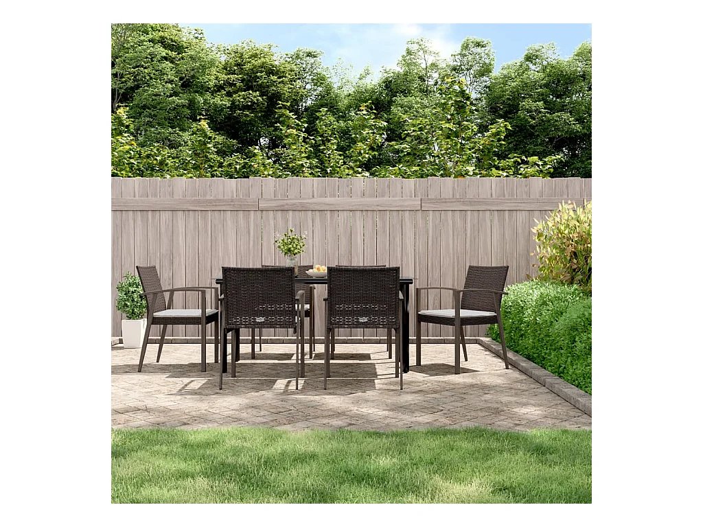 Ephrata Ensemble à manger de jardin 7 pcs coussins résine tressée acier