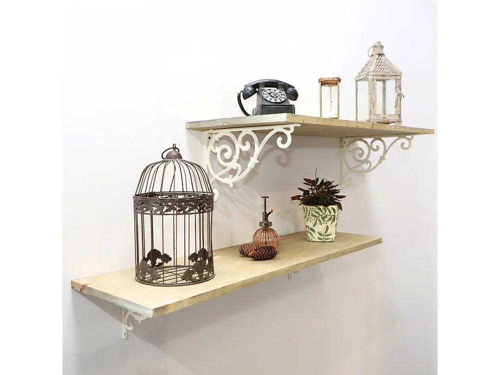 Équerre fixation étagère vintage ancienne fonte blanche 26 x 18 cm