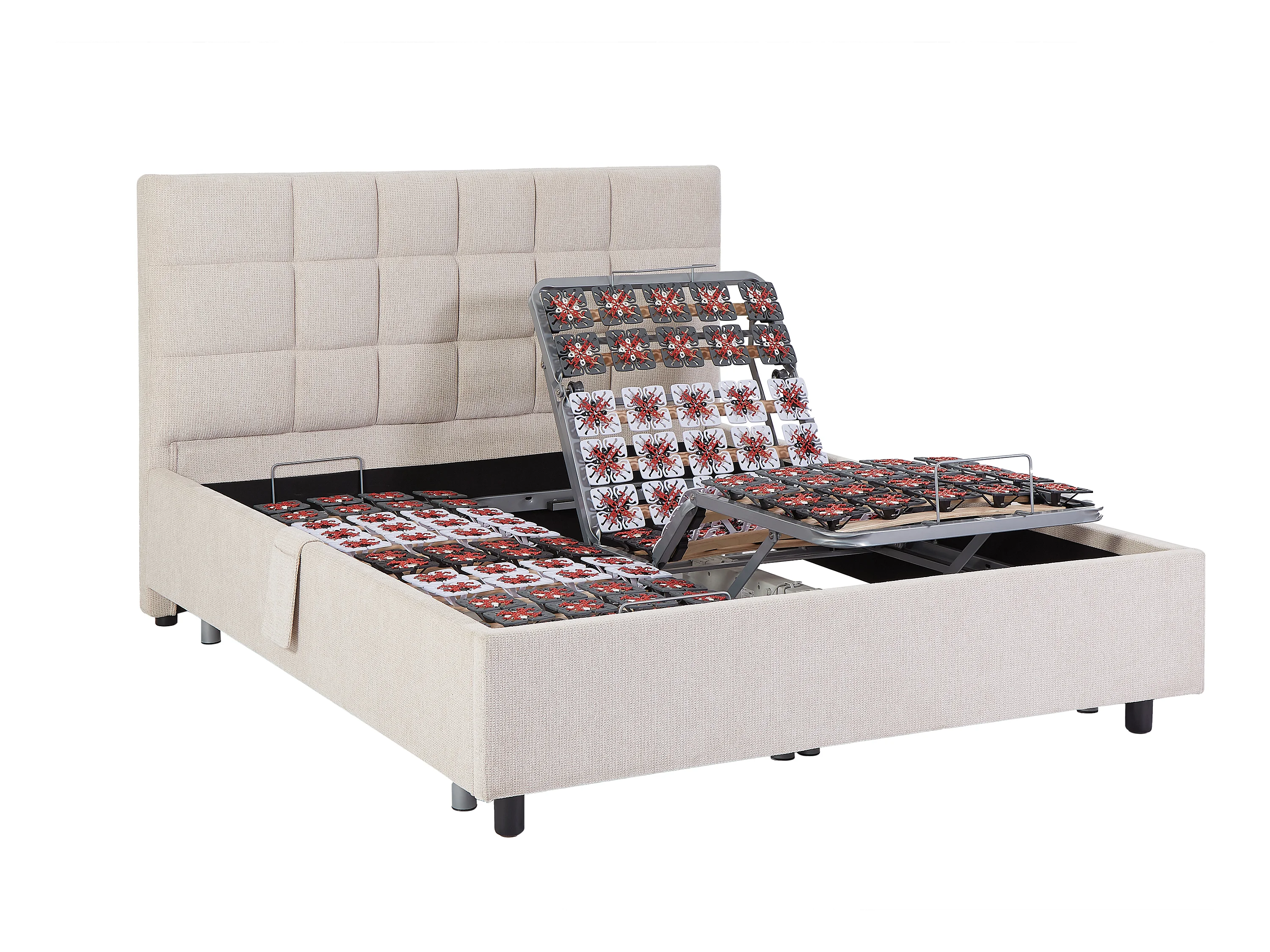 Lit électrique de relaxation déco tout plots + matelas mémoire de forme - 2 x 90 x 200 cm - Tissu - Beige - EREGA de YSMÉE