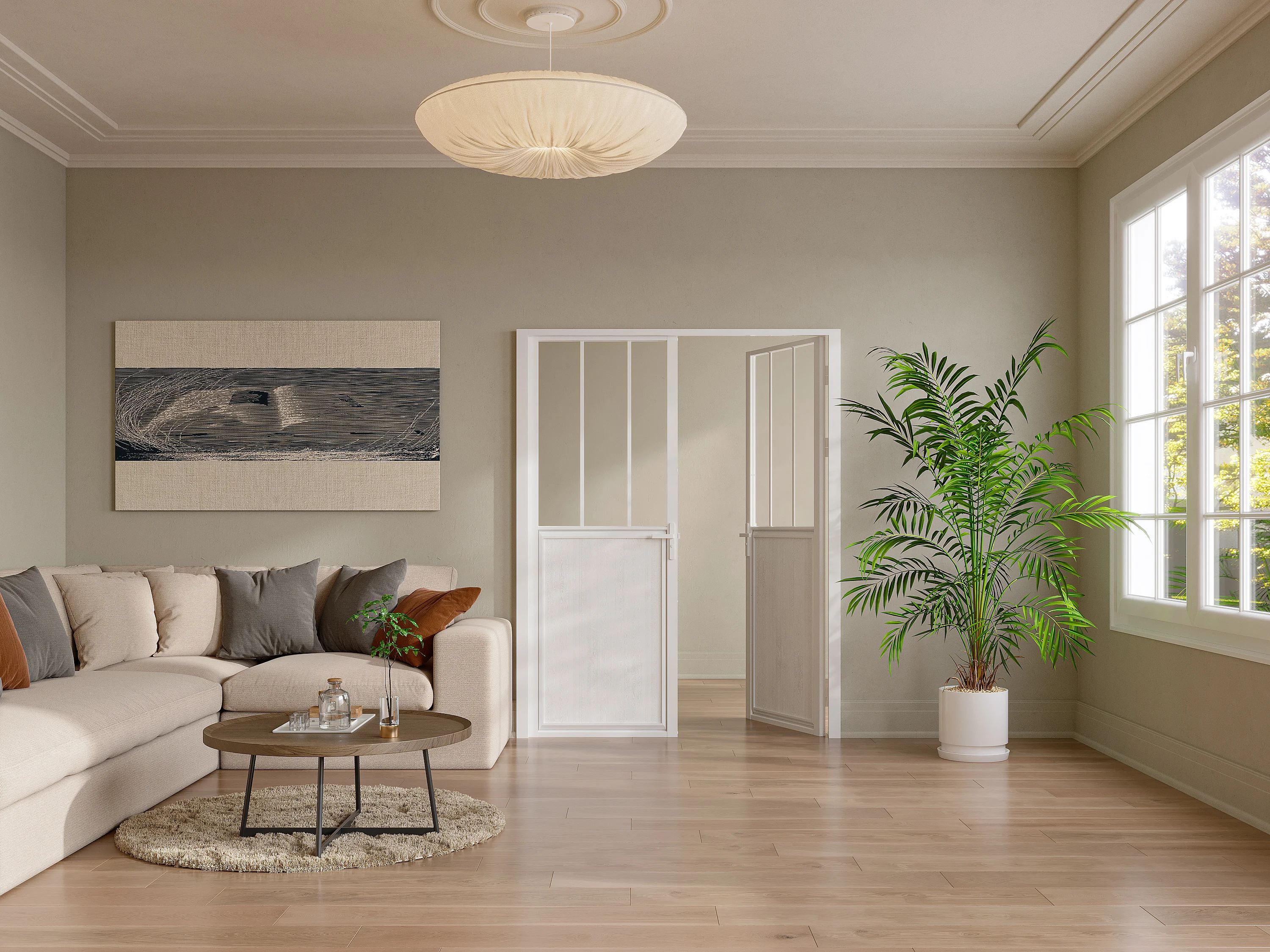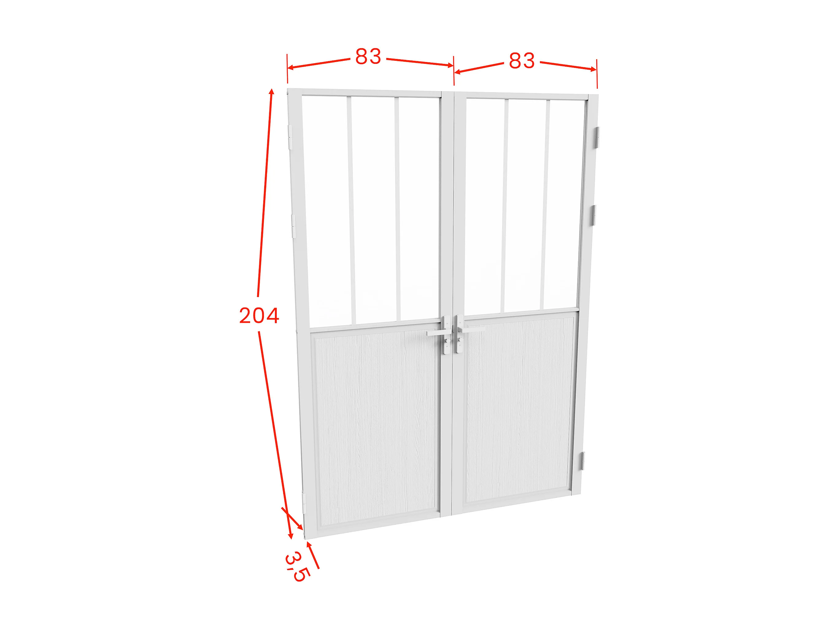 Bloc porte réversible à deux battants en aluminium et verre trempé style atelier - 2 x H204 x L83 cm - Blanc - ERMELO