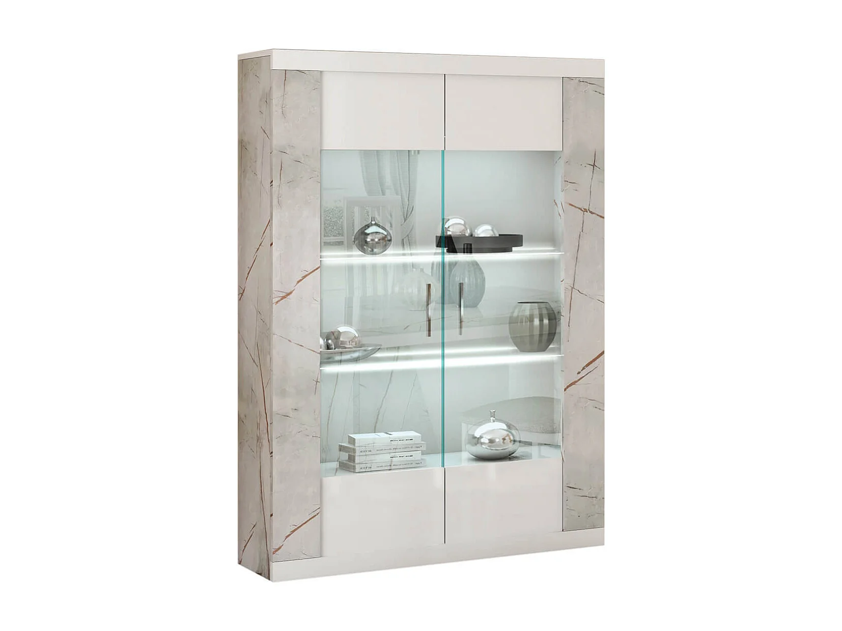 EROS - Séjour Complet Table Repas + Buffet + Vitrine 2 Portes Eclairage Led intégré
