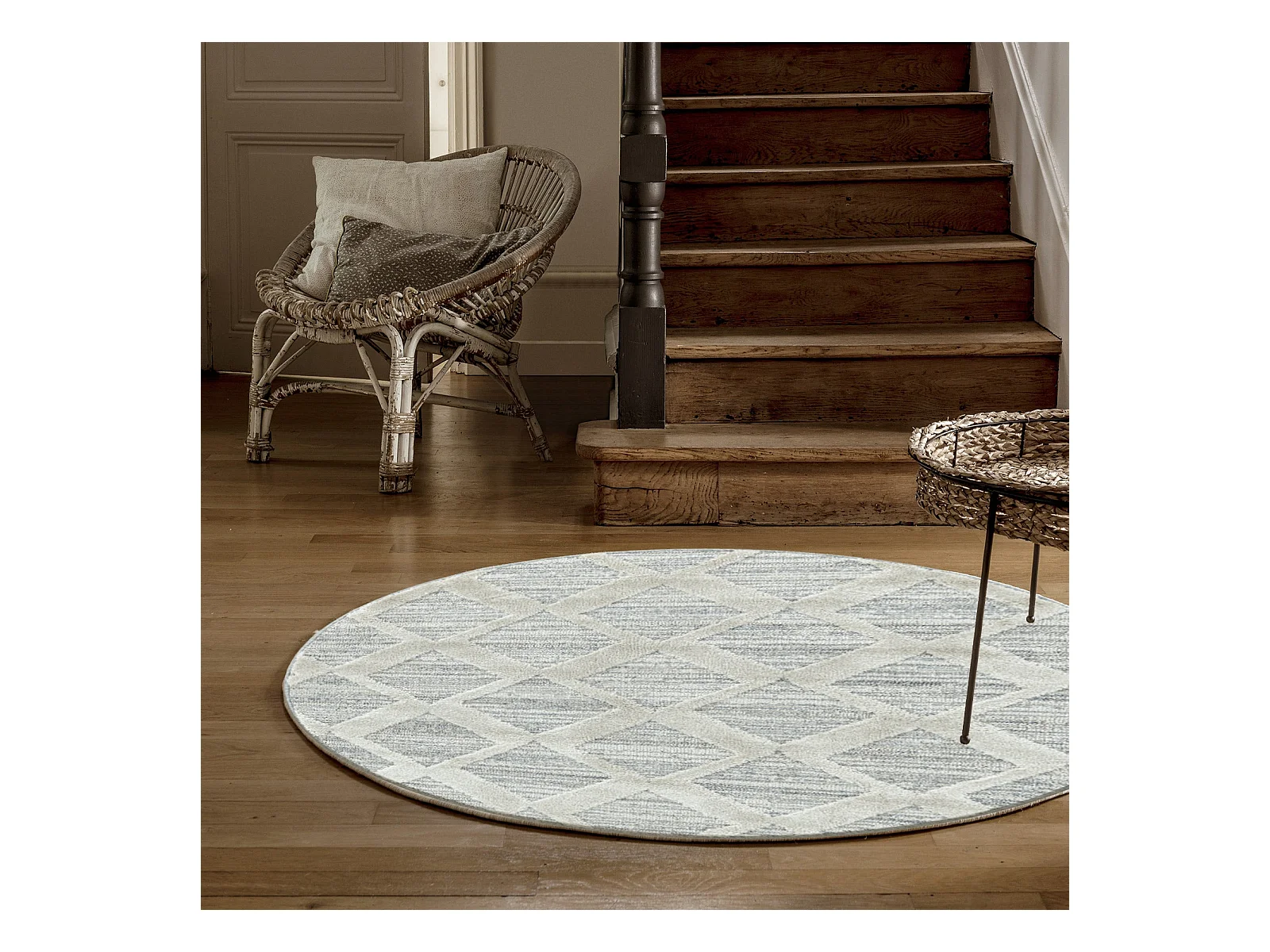 ESMIYA - Tapis Berbère Rond à relief - Crème 200 x 200 cm