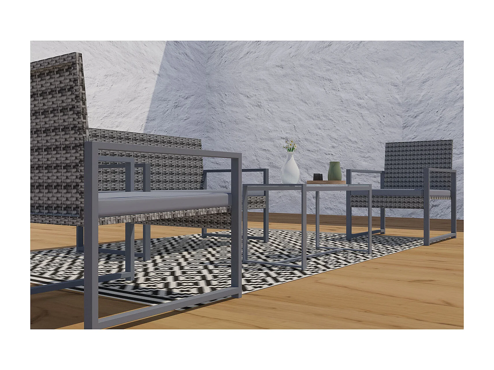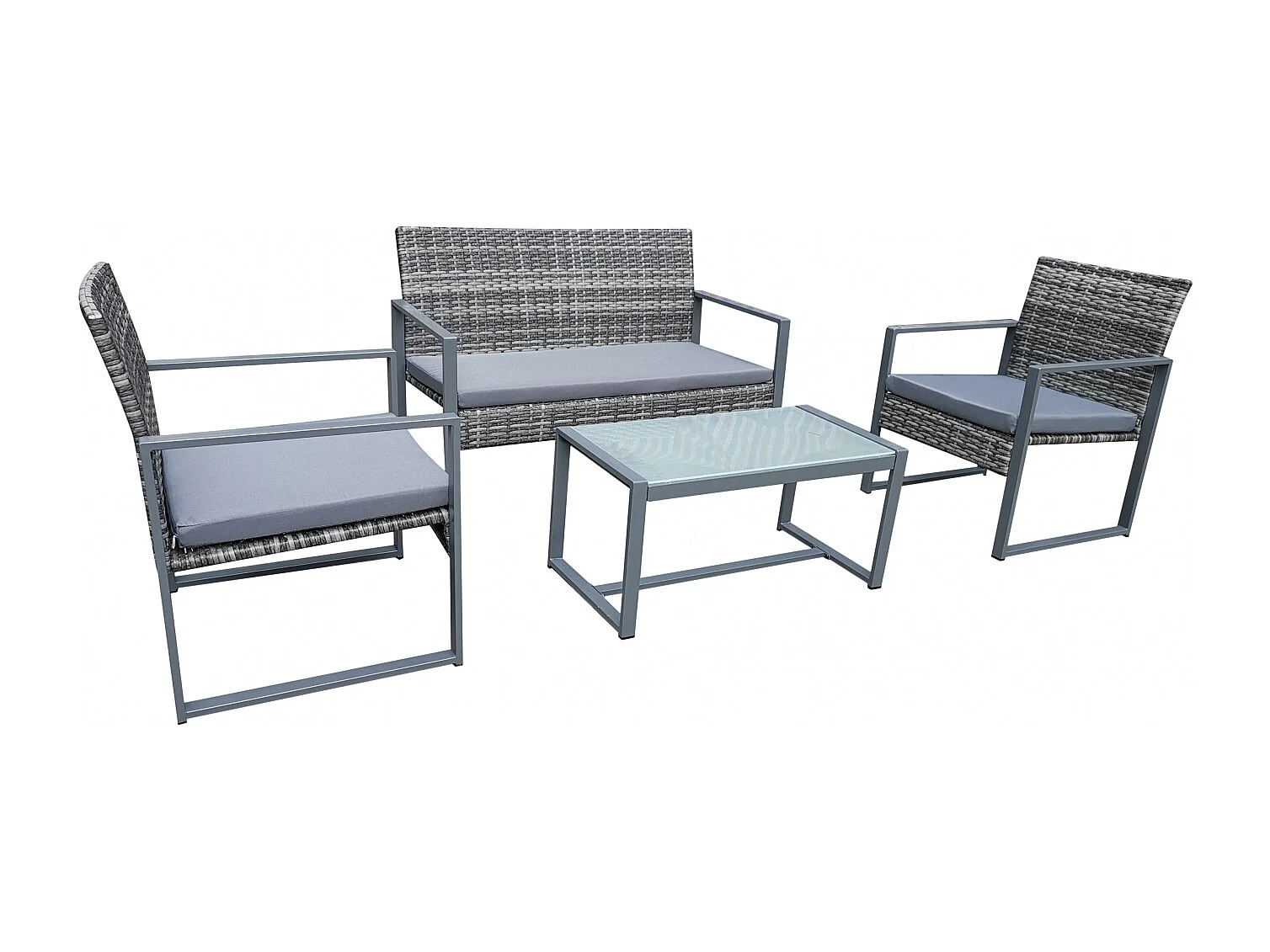 Salon de jardin bas 4 places résine tressée gris foncé ESNA