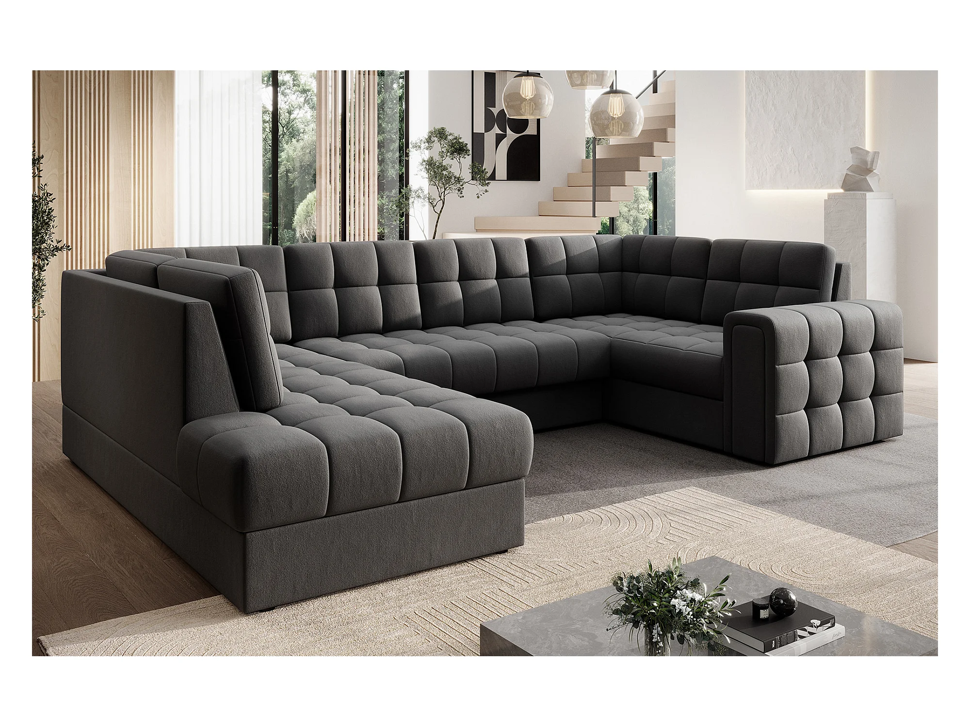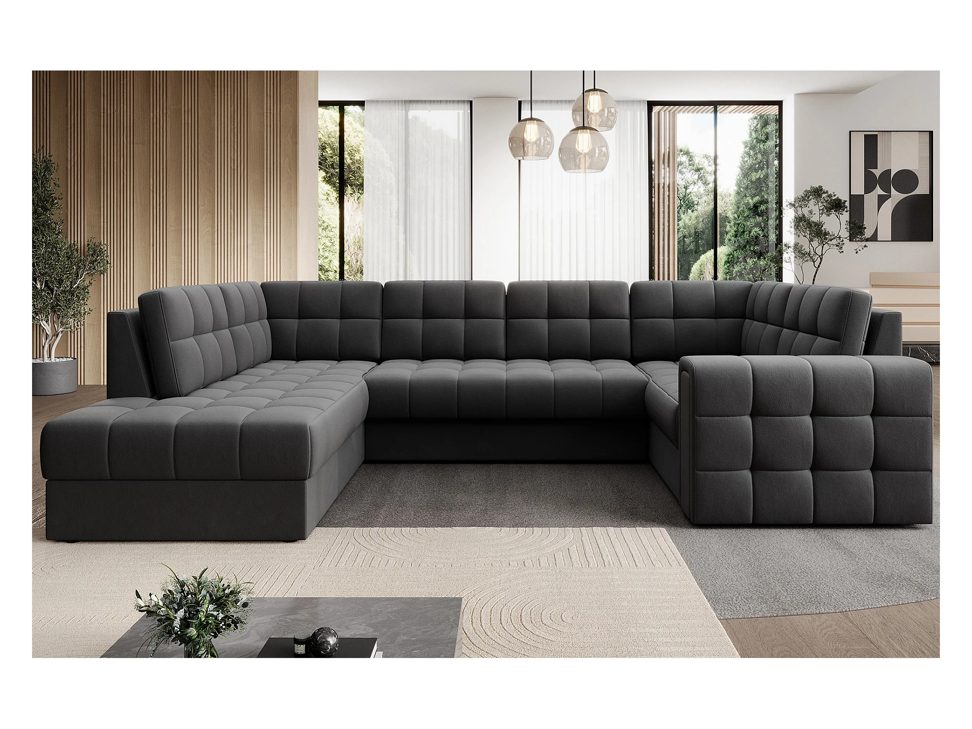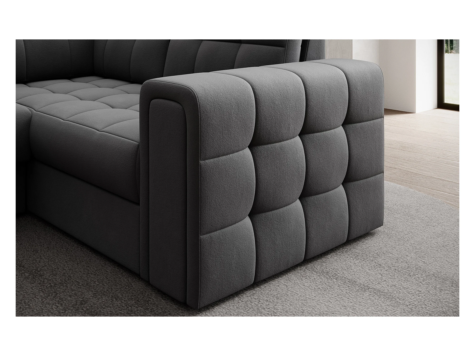Canapé panoramique BLOOM velours capitonné - Rangement et convertible-Gris foncé-Coffre de rangement à gauche