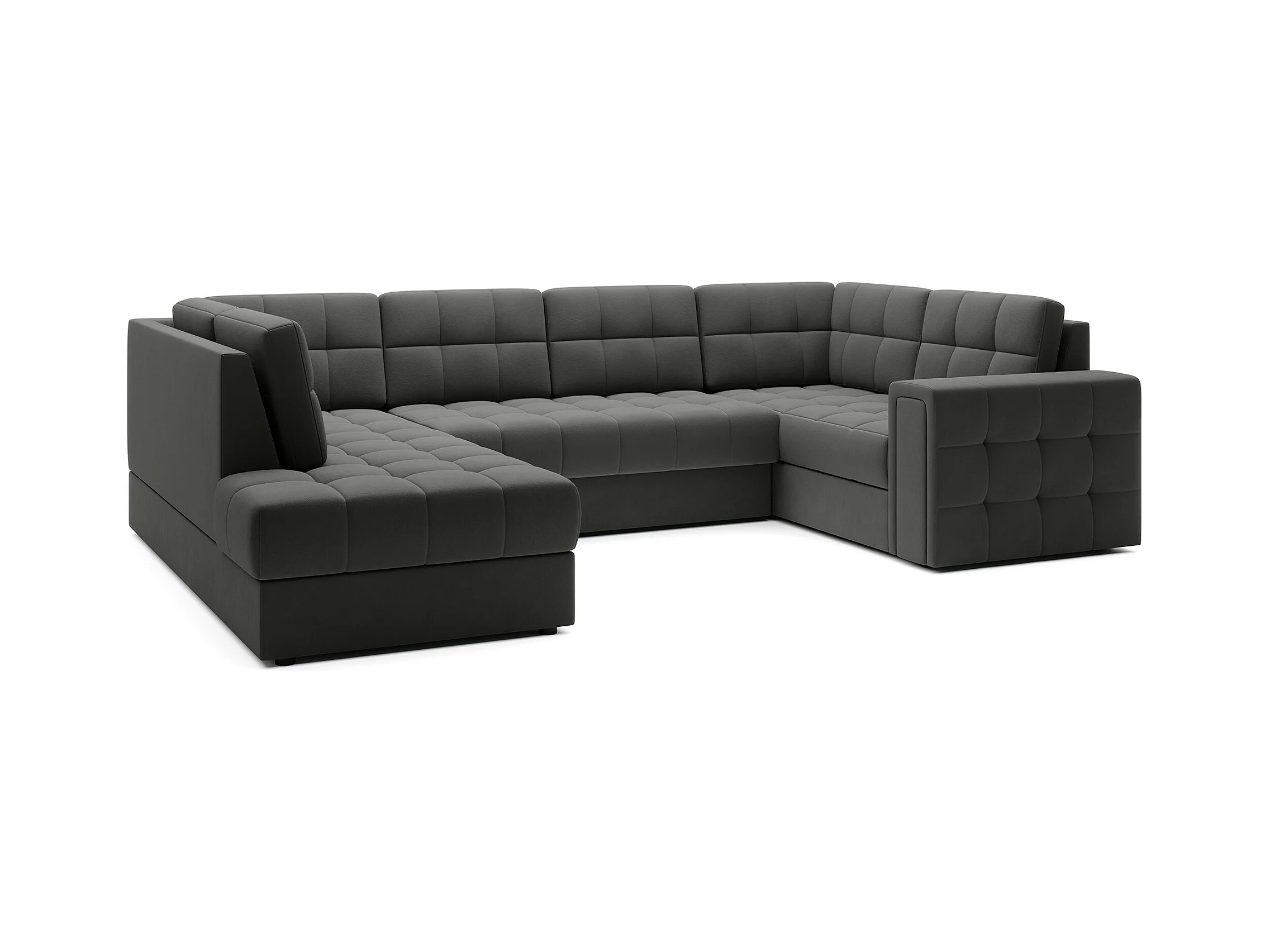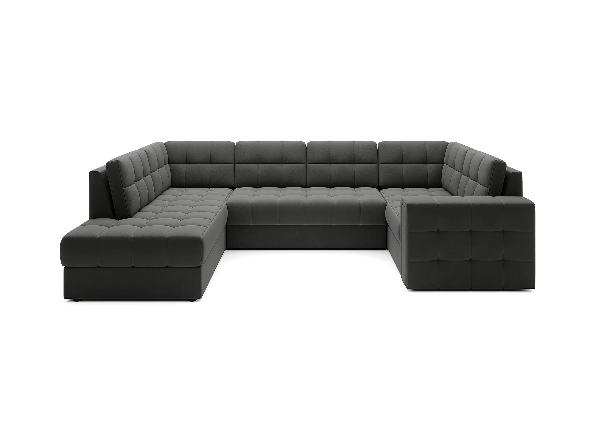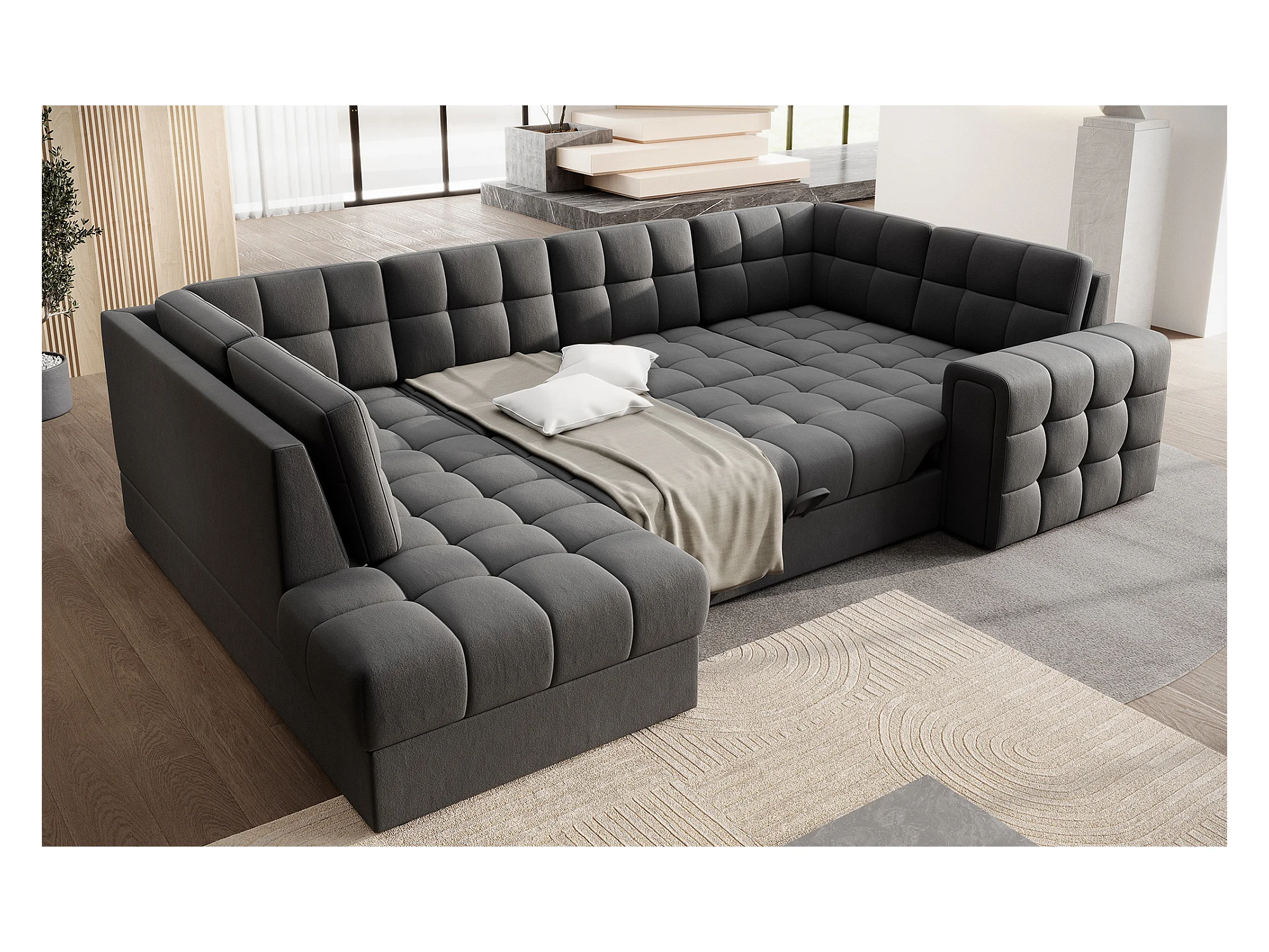 Canapé panoramique BLOOM velours capitonné - Rangement et convertible-Gris foncé-Coffre de rangement à gauche