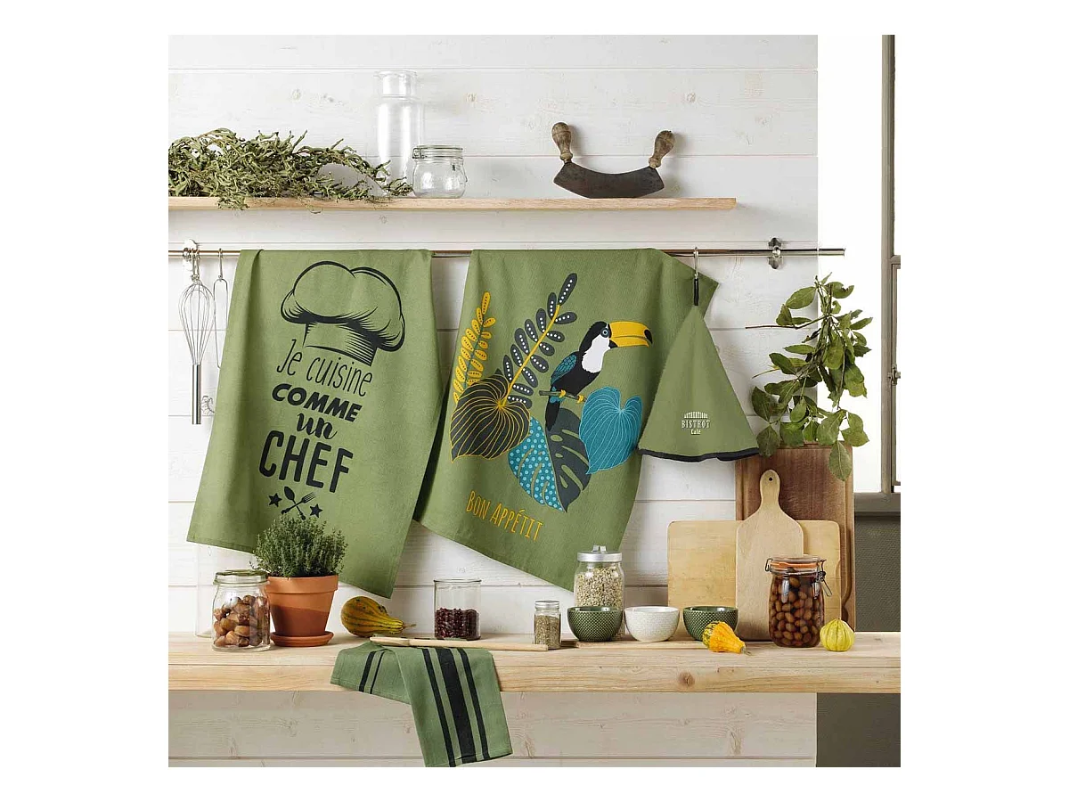 Set de torchons de cuisine Bazanti vert moyen coton 40 x 60