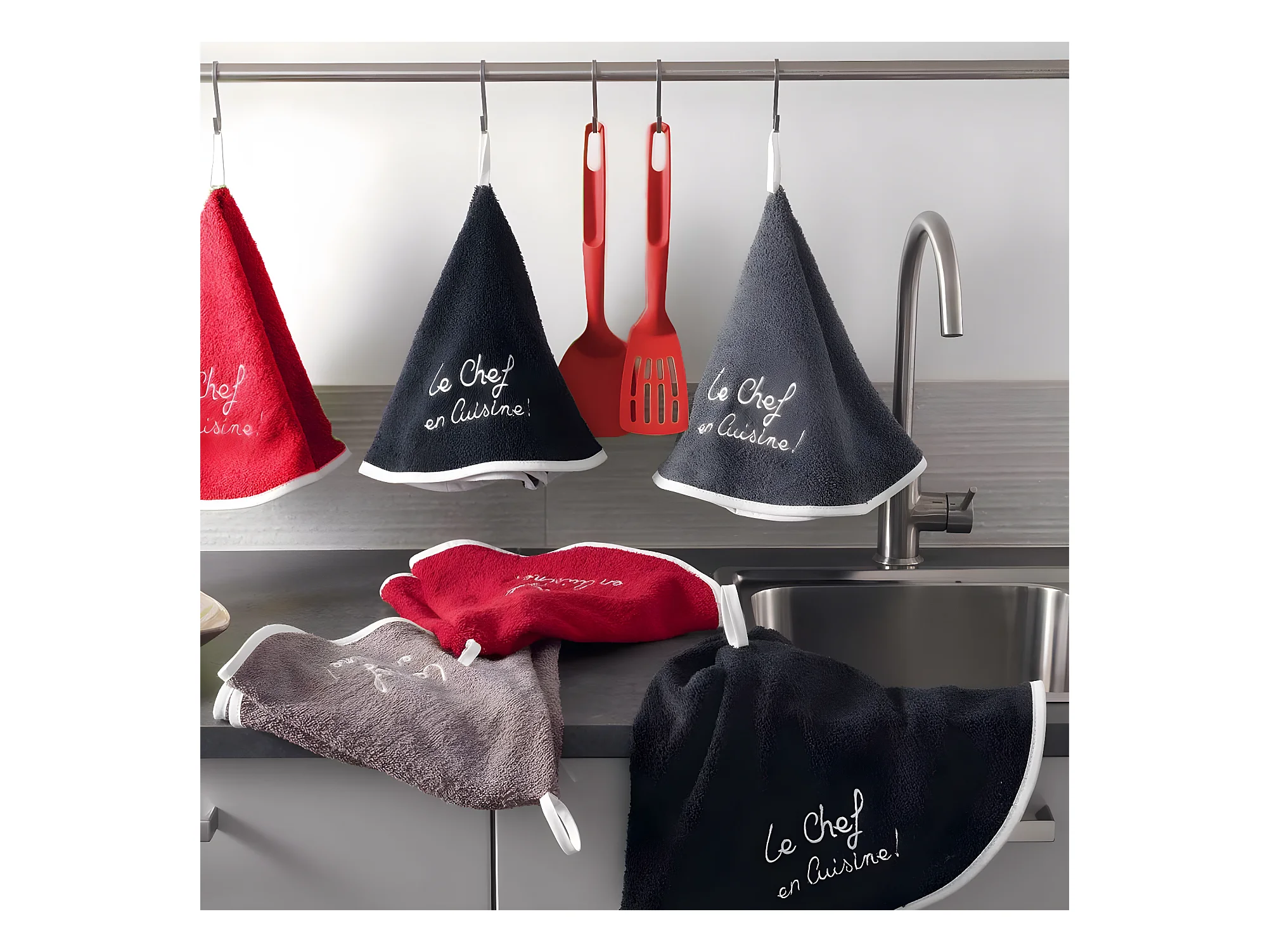 Lot de 3 Torchons Microfibre "Cuistot" 40x40cm Gris