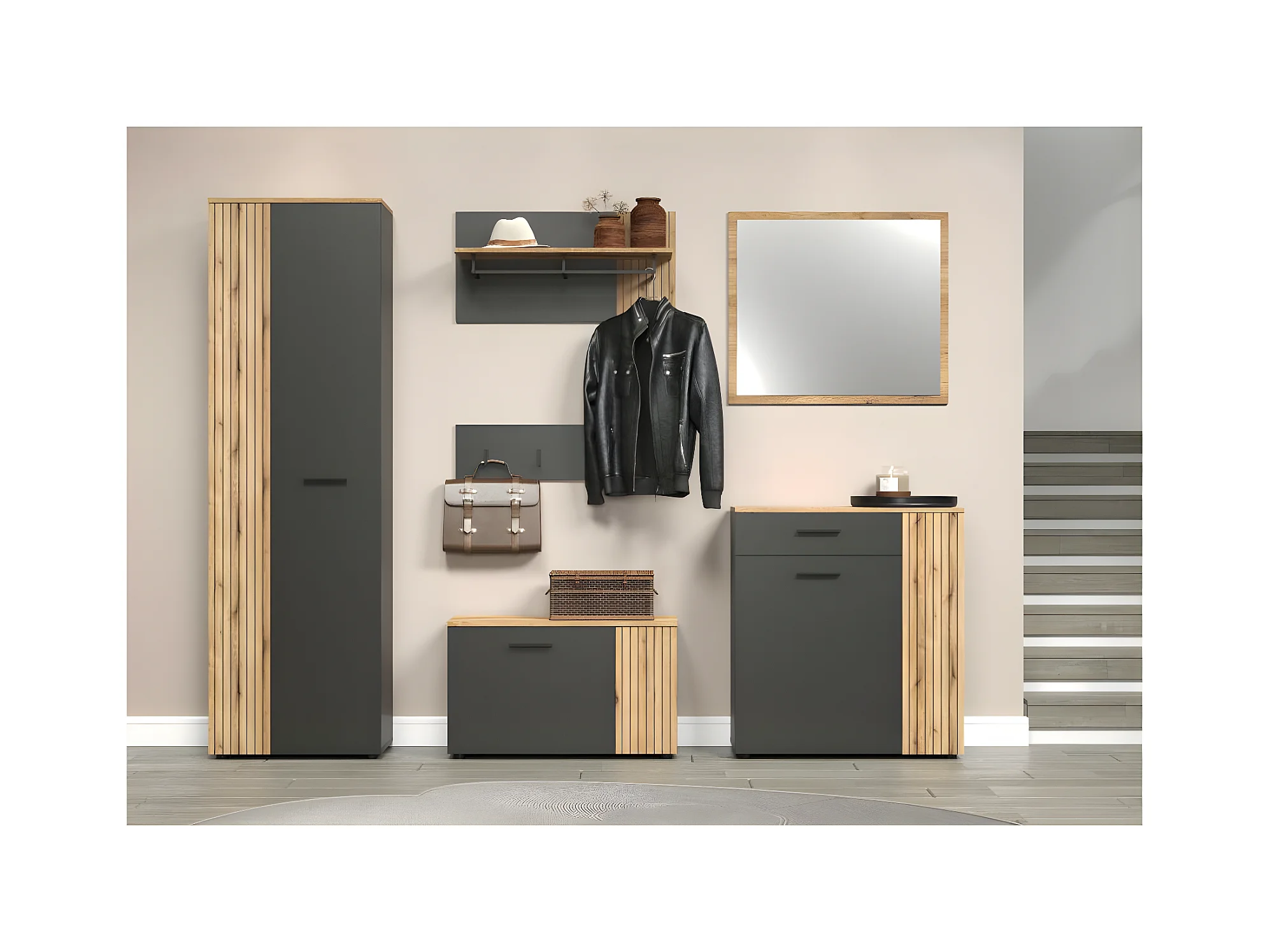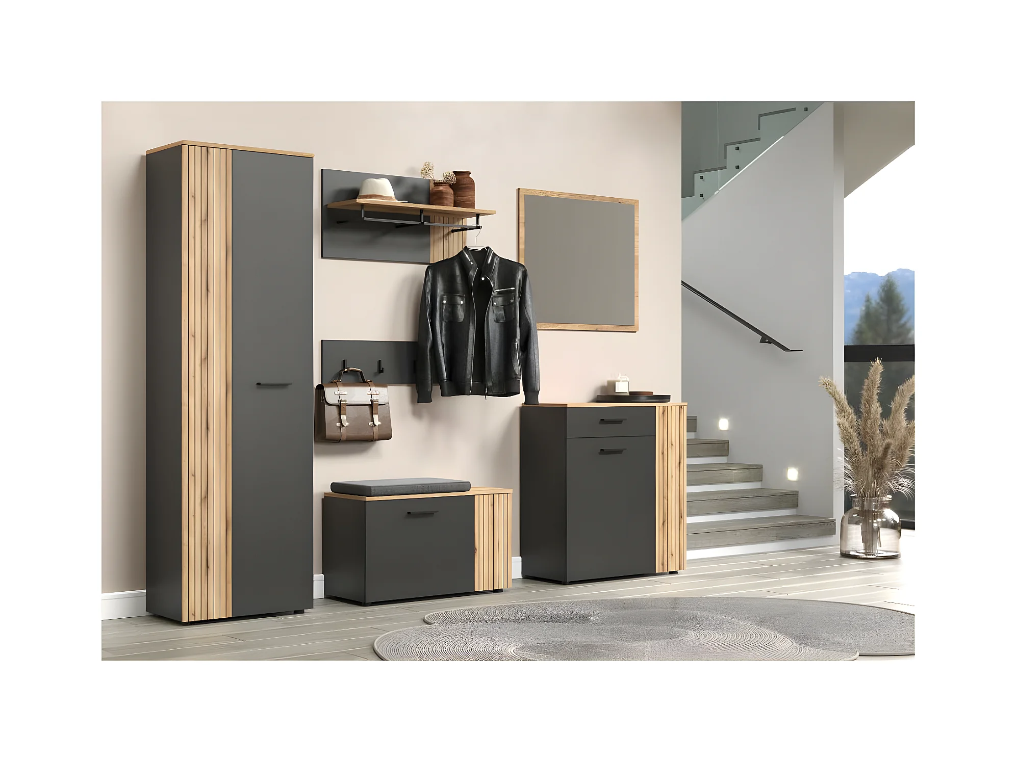 Esteban porte-manteau gris, chêne décor.