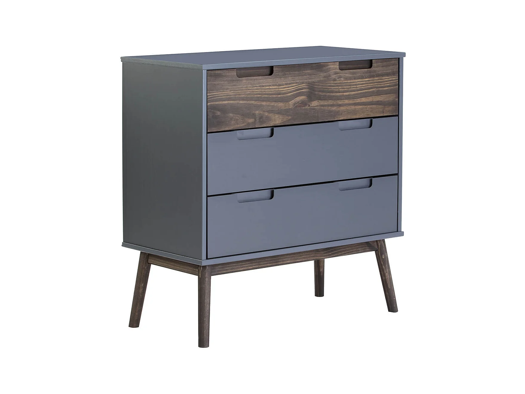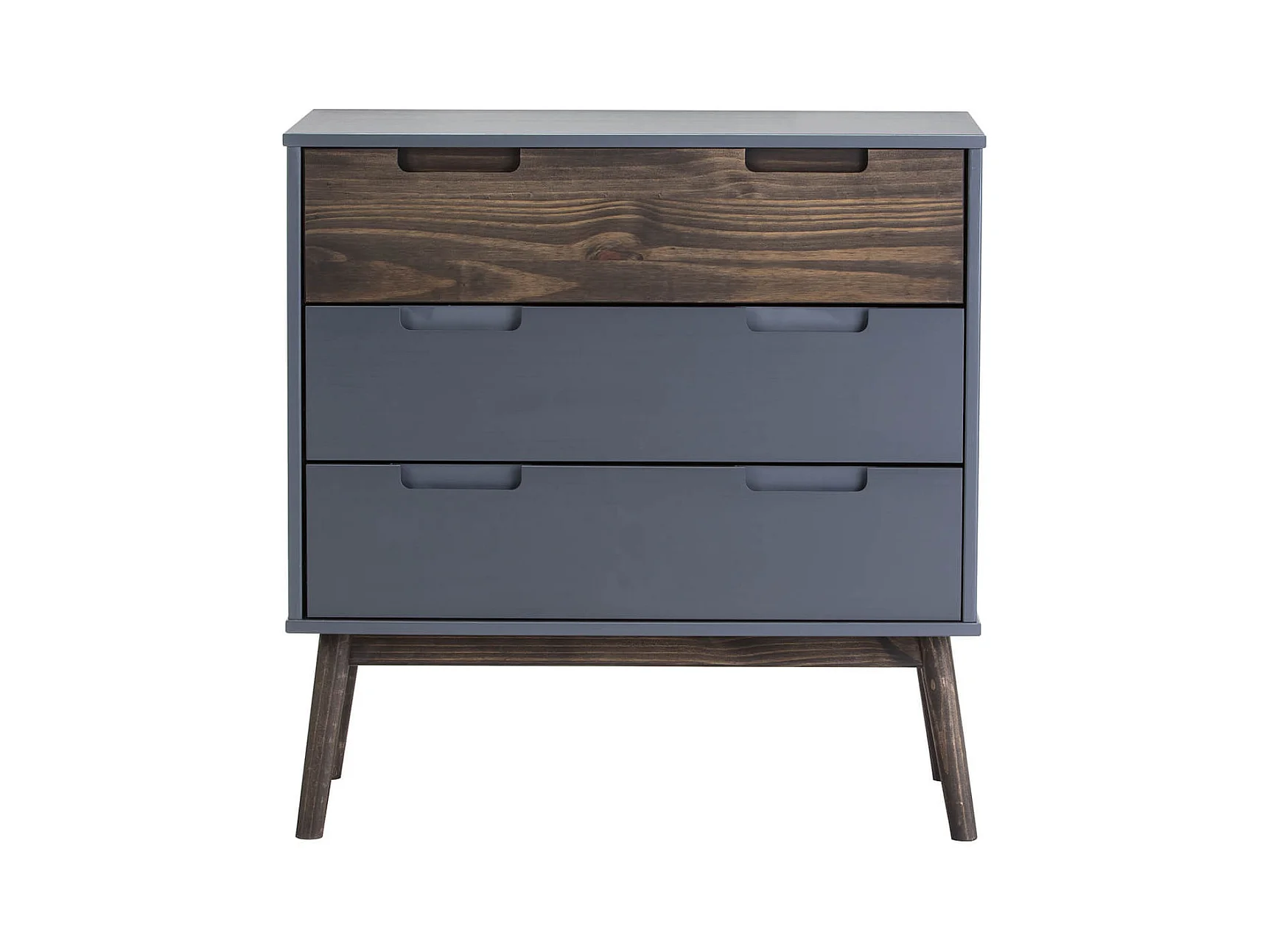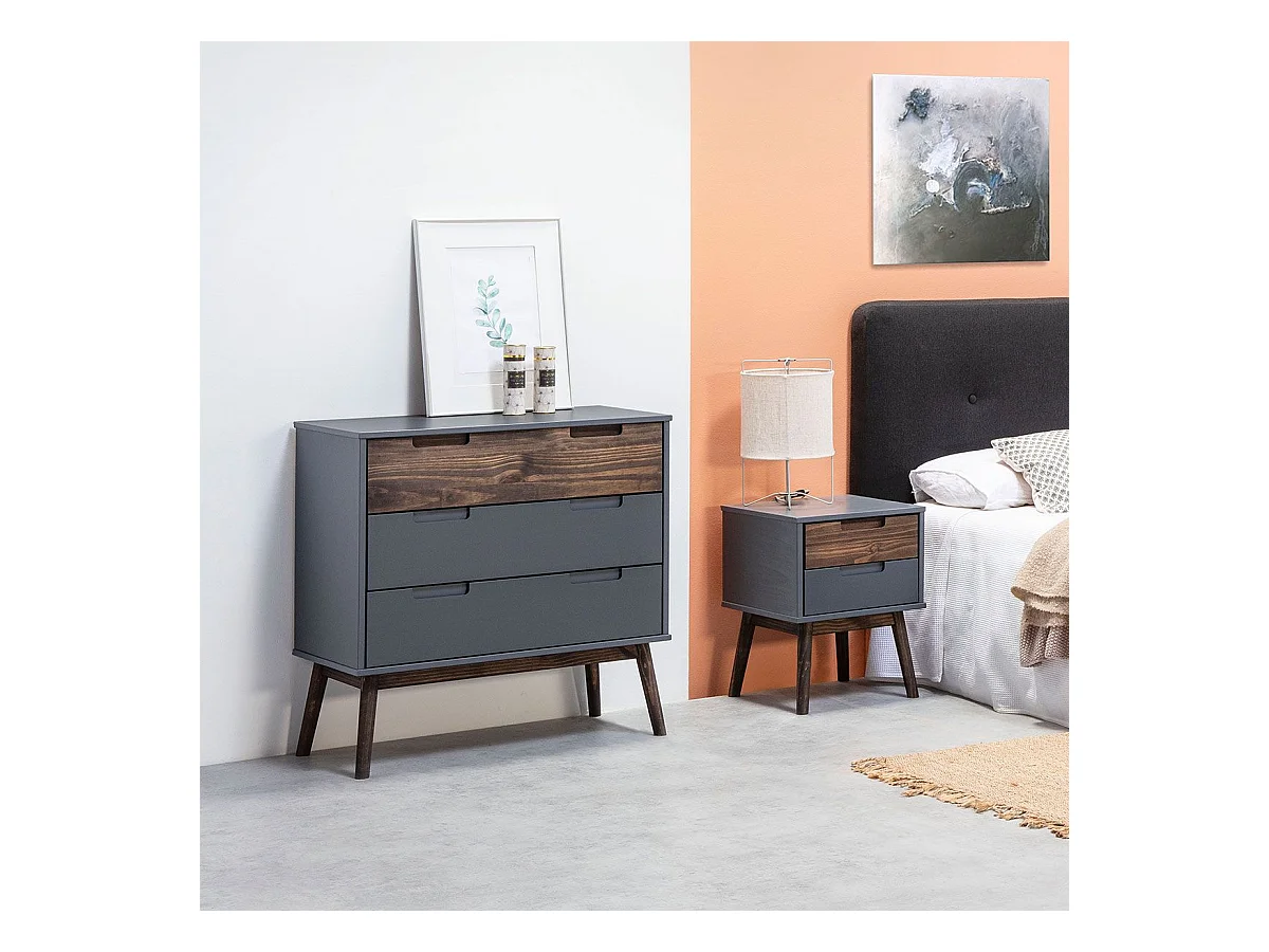 ESTRELLA - Commode 3 Tiroirs Pin Massif Gris et Naturel