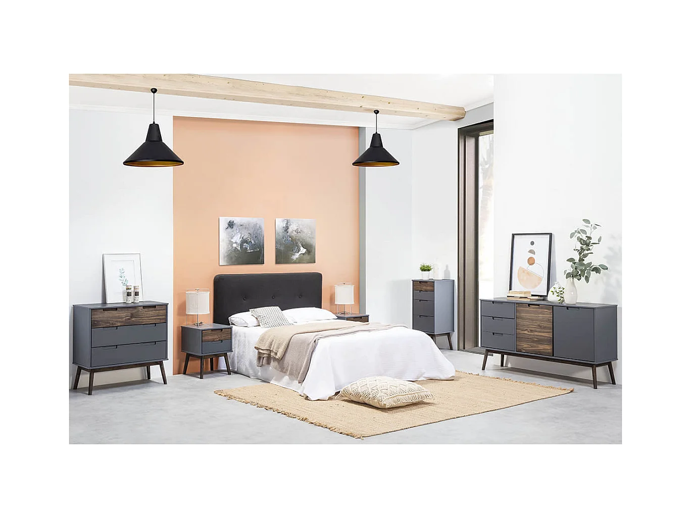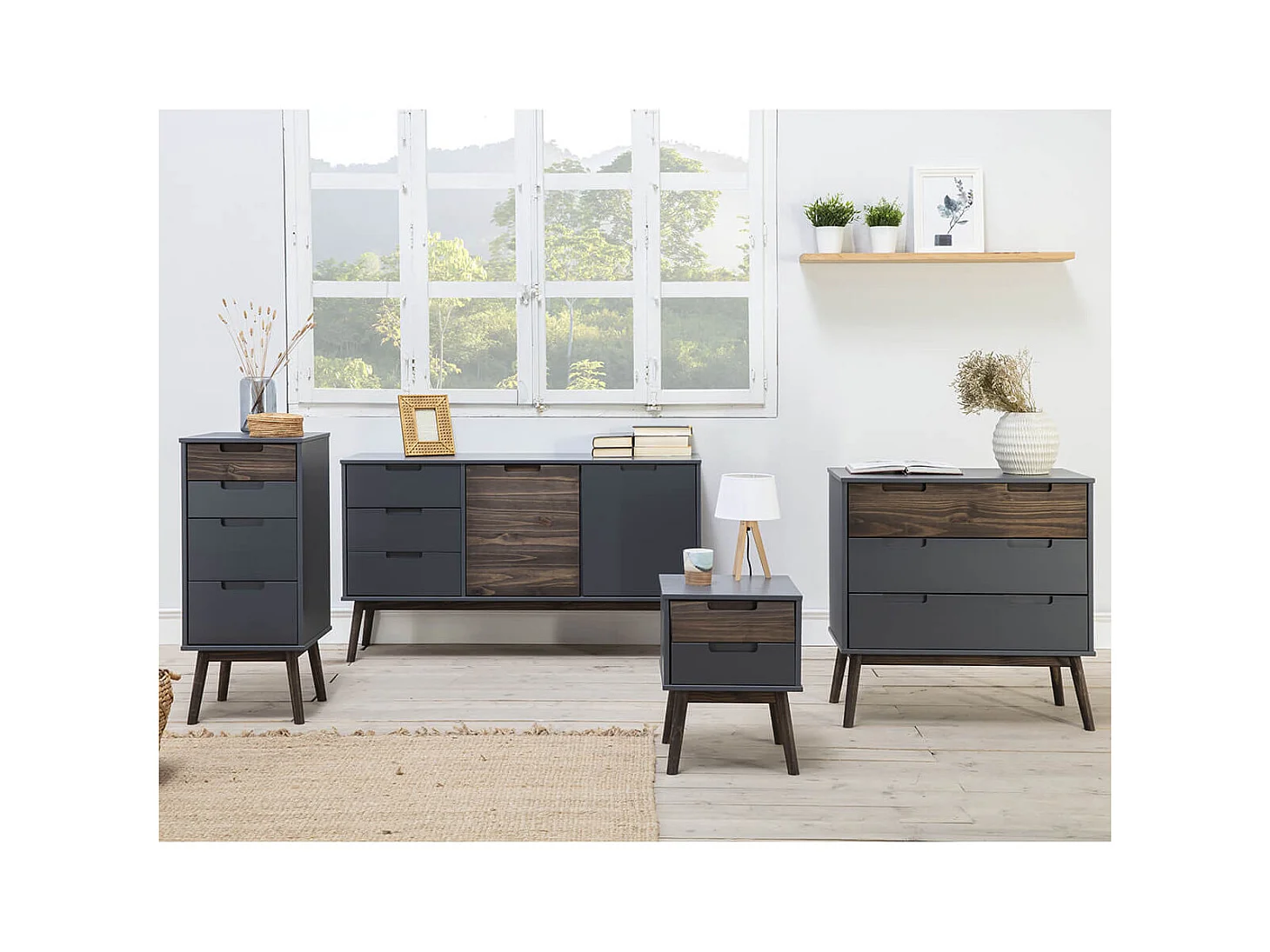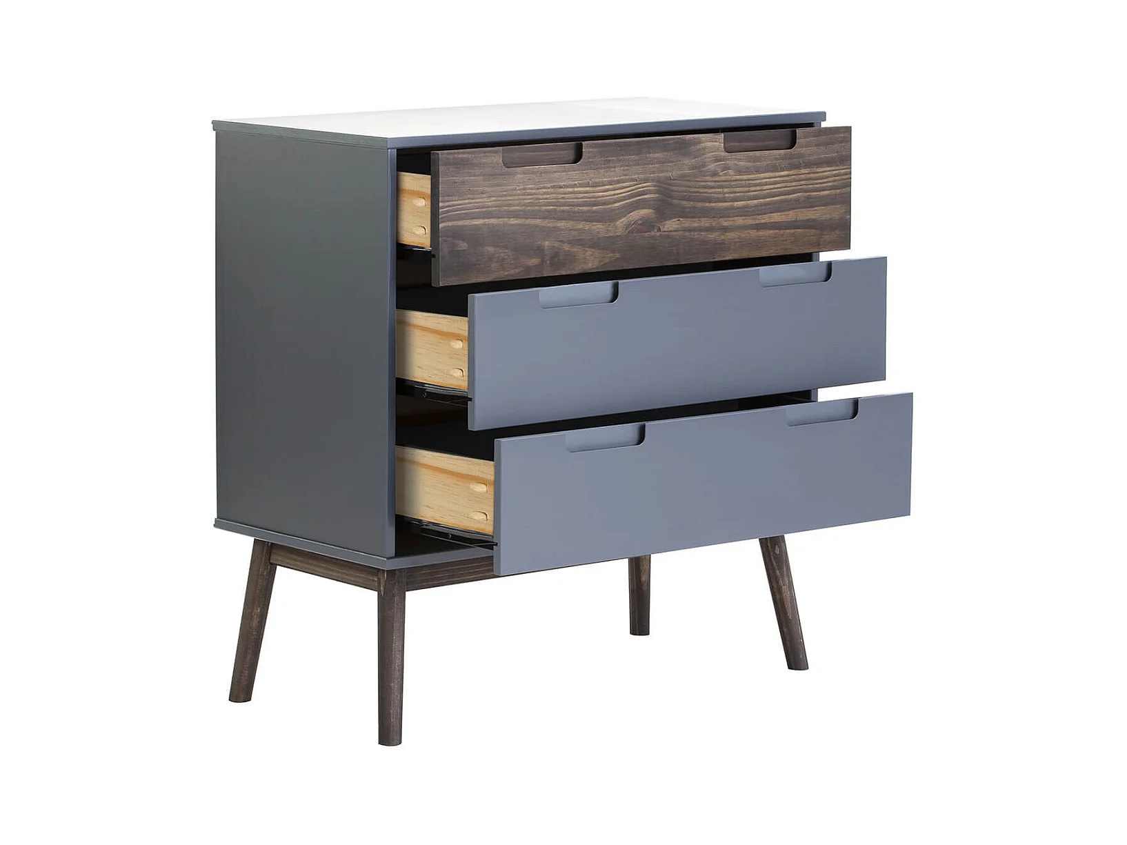 ESTRELLA - Commode 3 Tiroirs Pin Massif Gris et Naturel