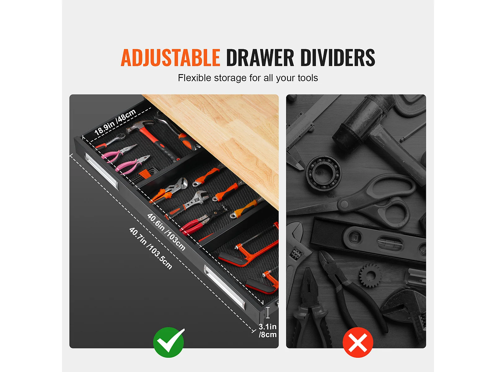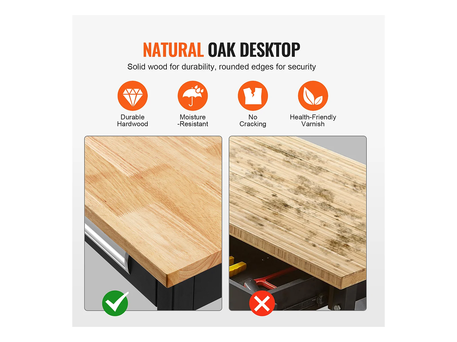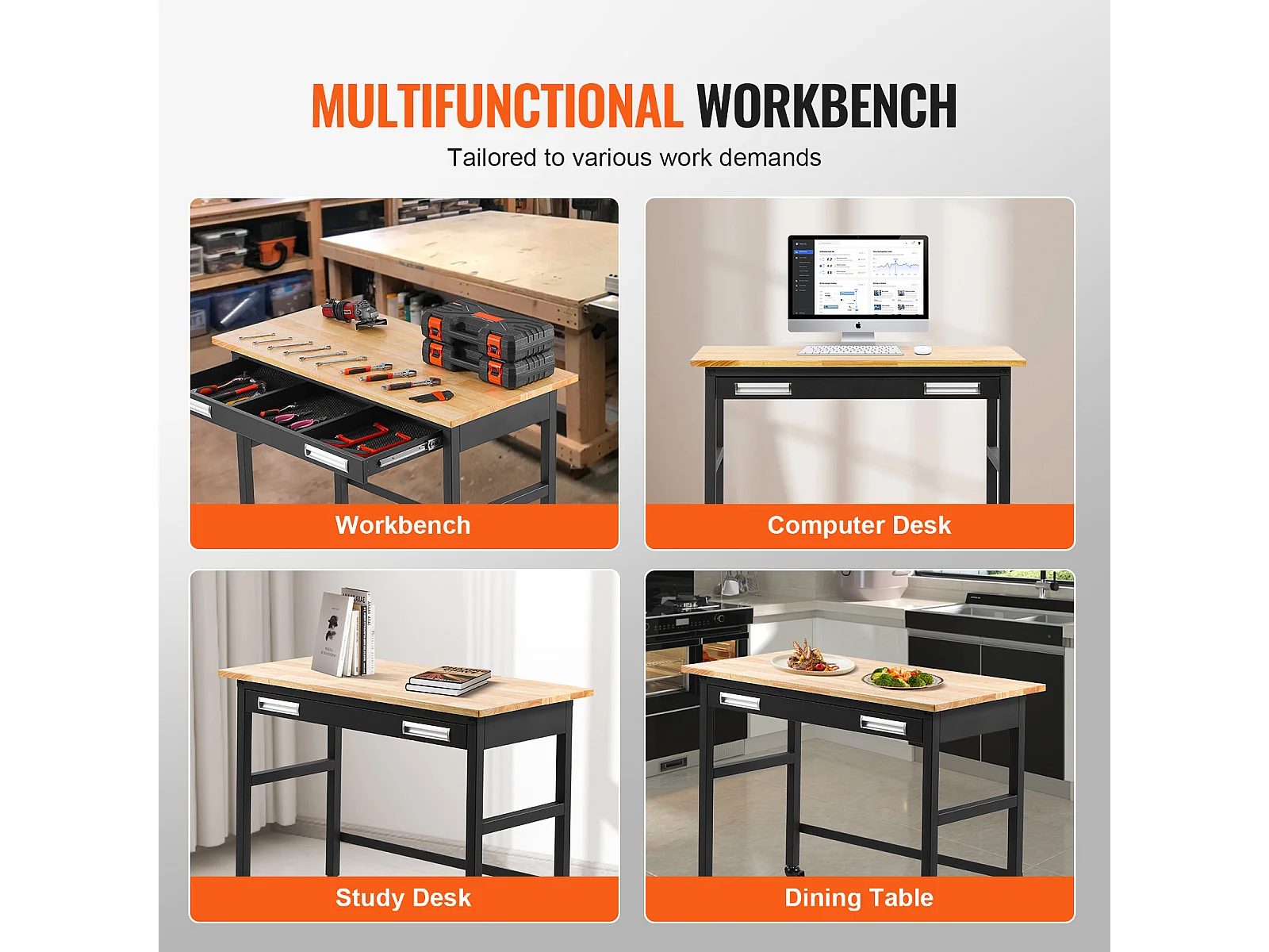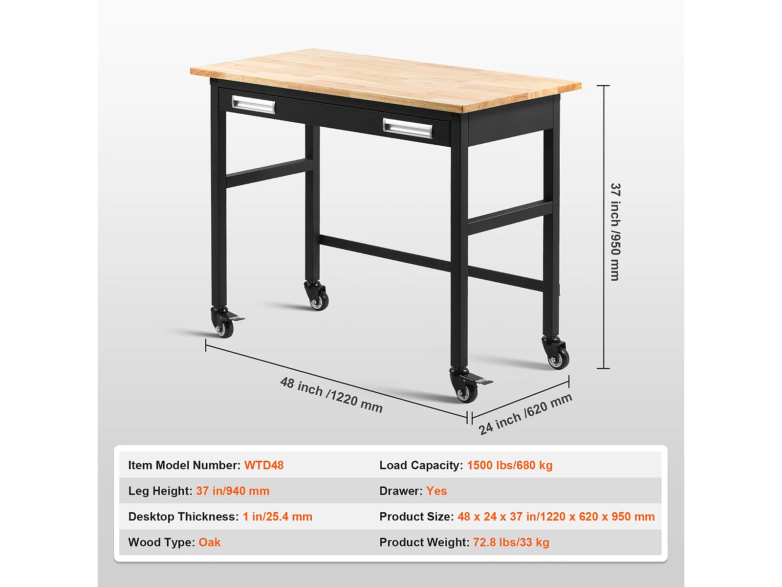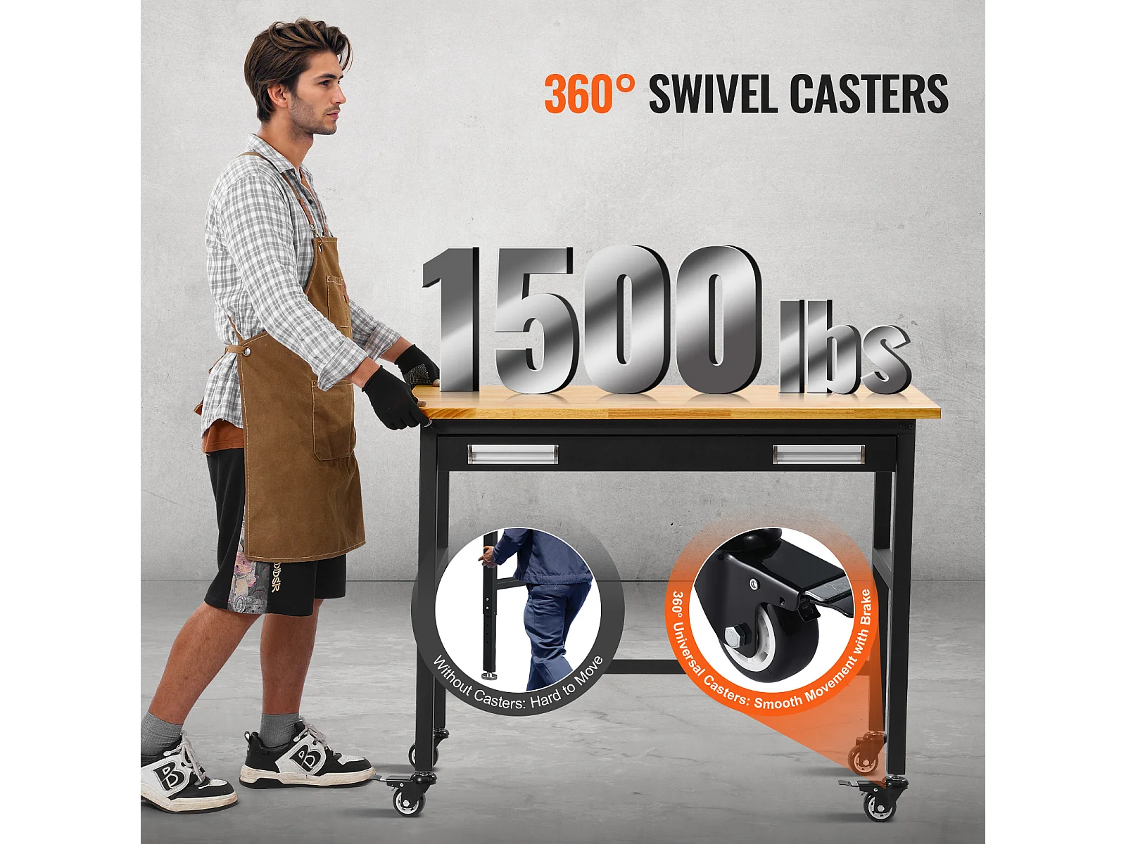 Établi Table sur Roulettes SucceBuy avec Tiroir, 122 cm, Capacité de Charge de 680 kg, avec Plateau en Bois