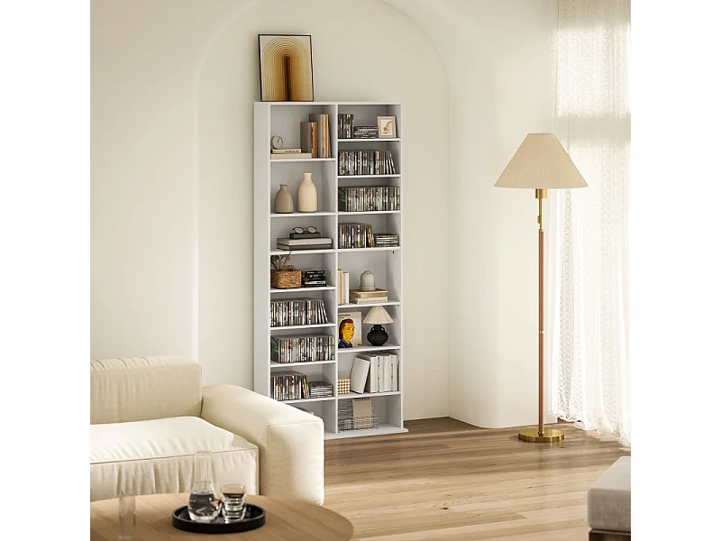 Etagère bibliothèque colonne H.158cm - 4 niches, tiroir, porte - blanc