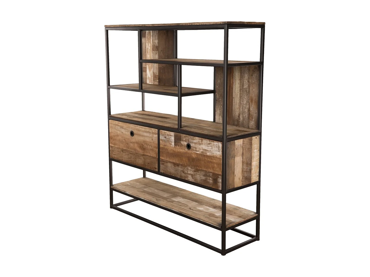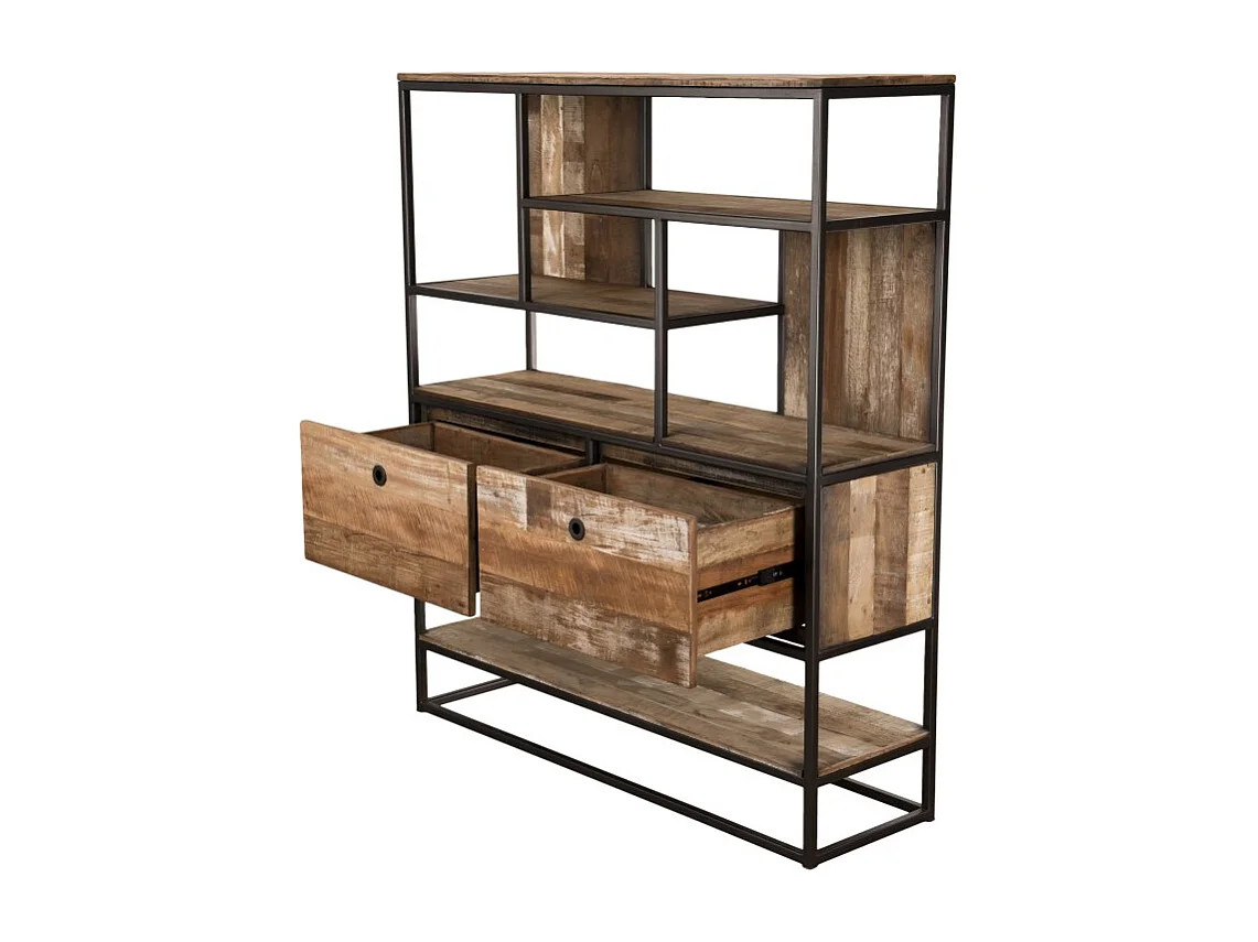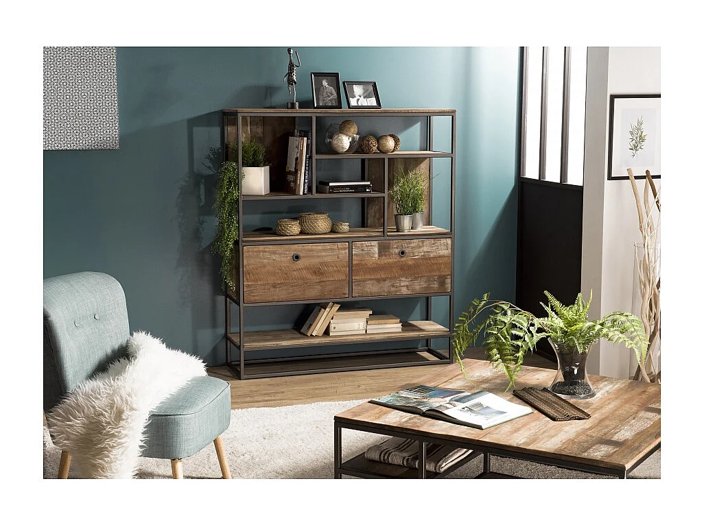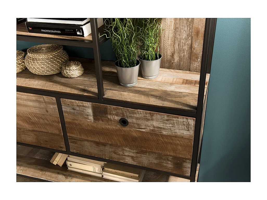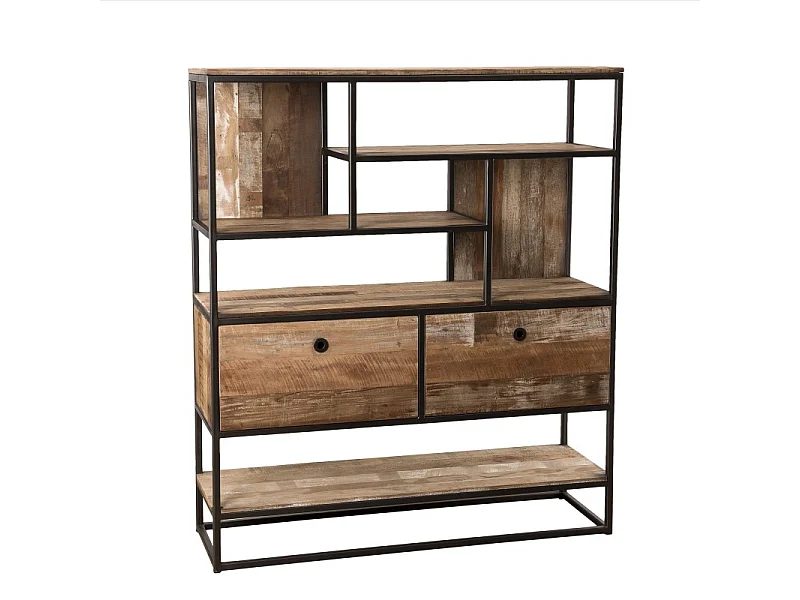 SIXTINE - Étagère marron 2 tiroirs et 7 niches bois de Teck recyclé