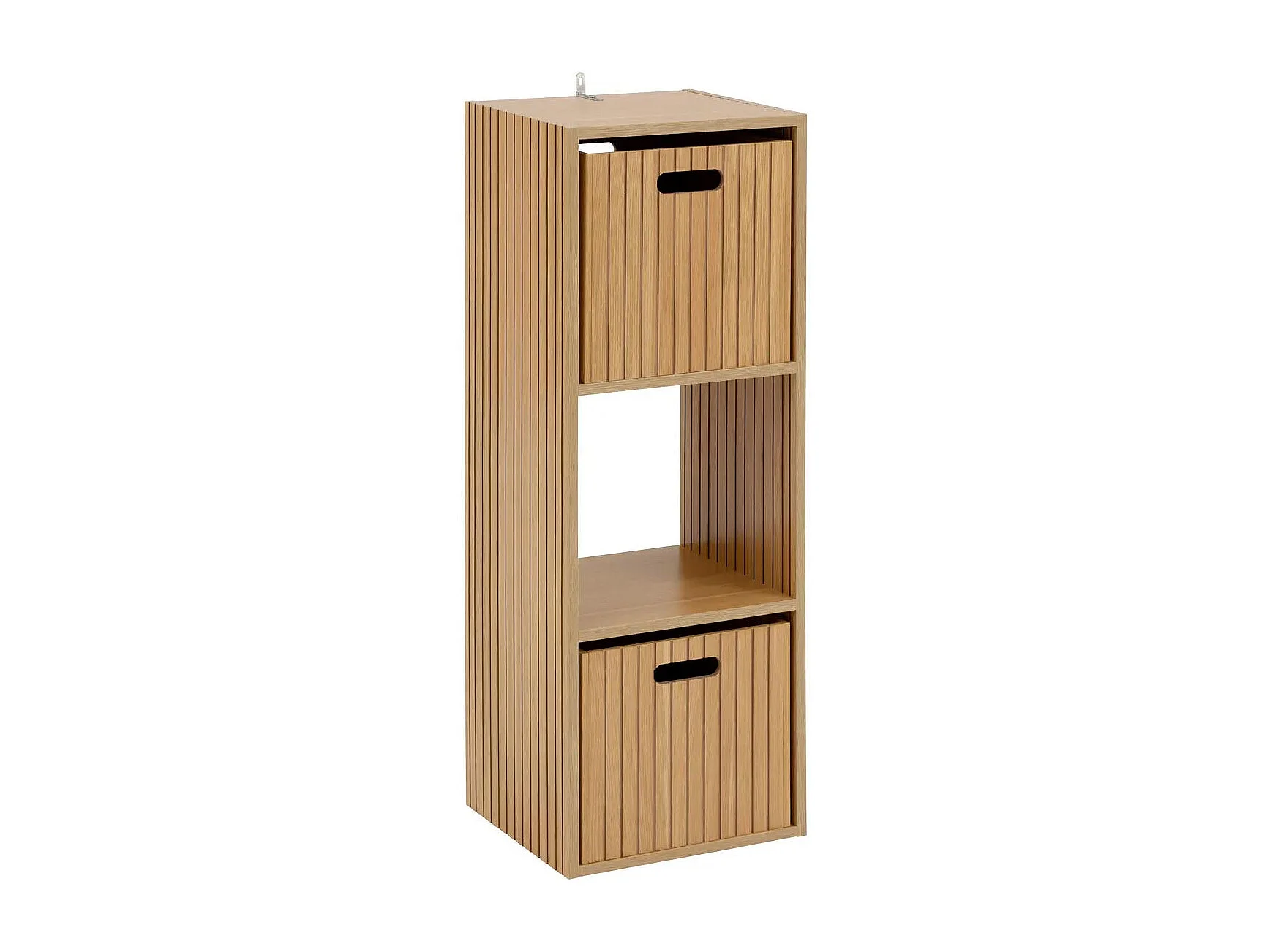 Meuble Etagère 2 Cases de rangement 1 Porte effet bois naturel H 67.6 cm