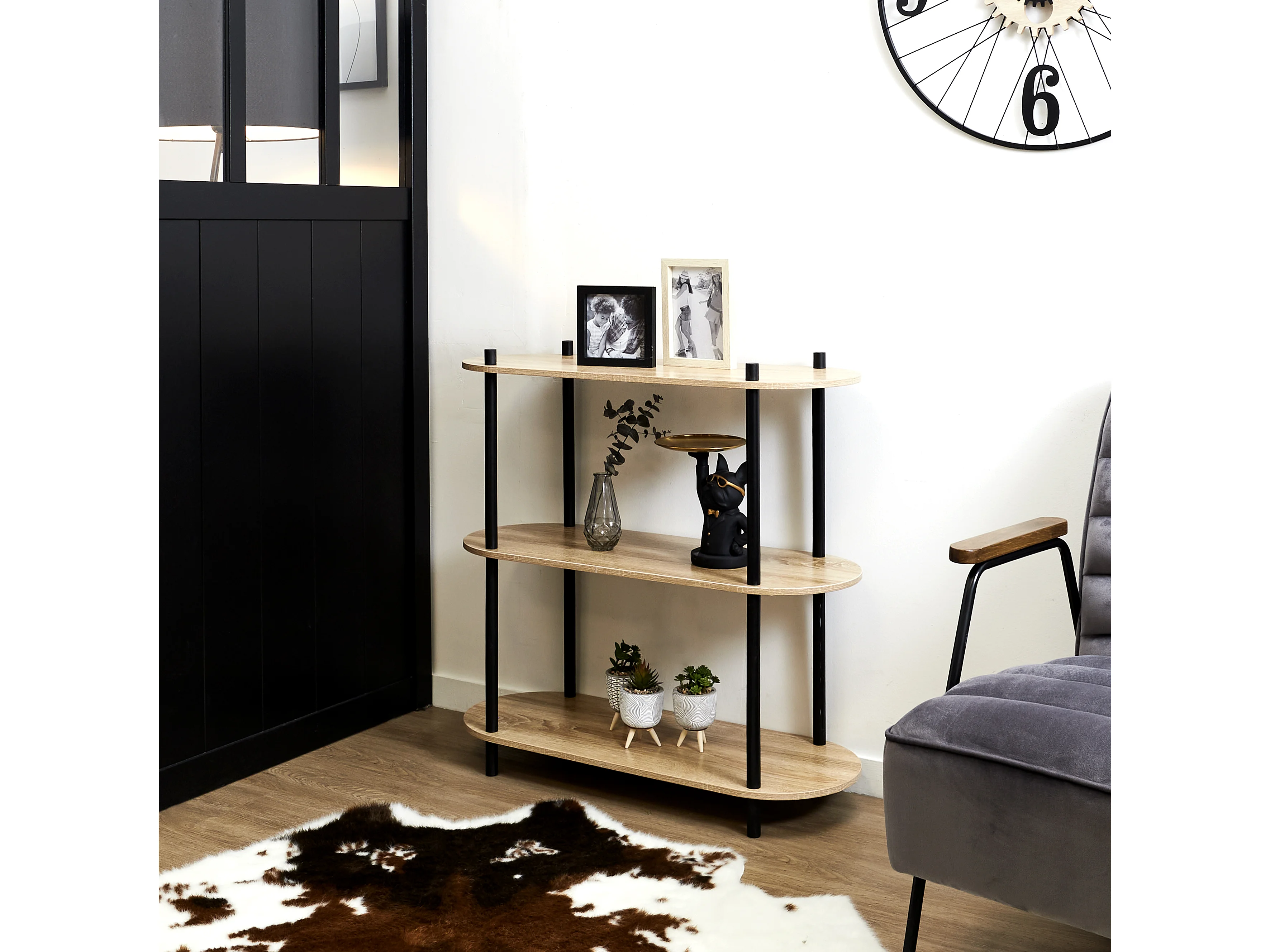 ENTAS - Etagère 3 Tablettes Ovales Aspect Bois Pieds Noirs