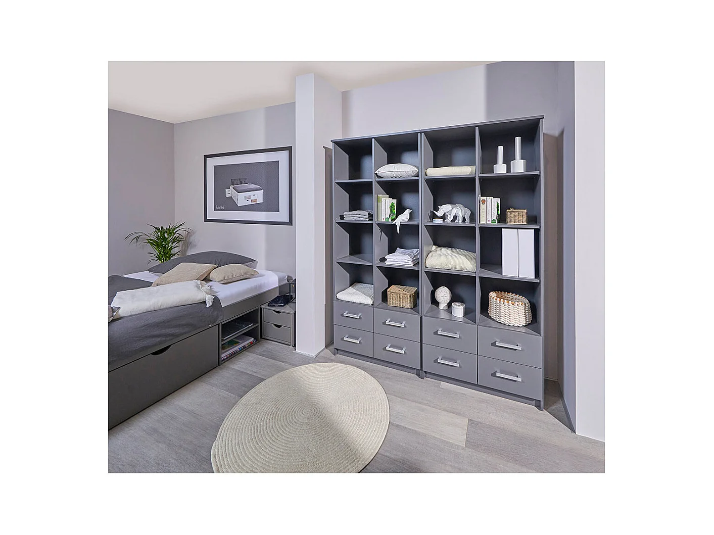 Étagère 4 Niveaux & 4 Portes "Azio" 91cm Gris