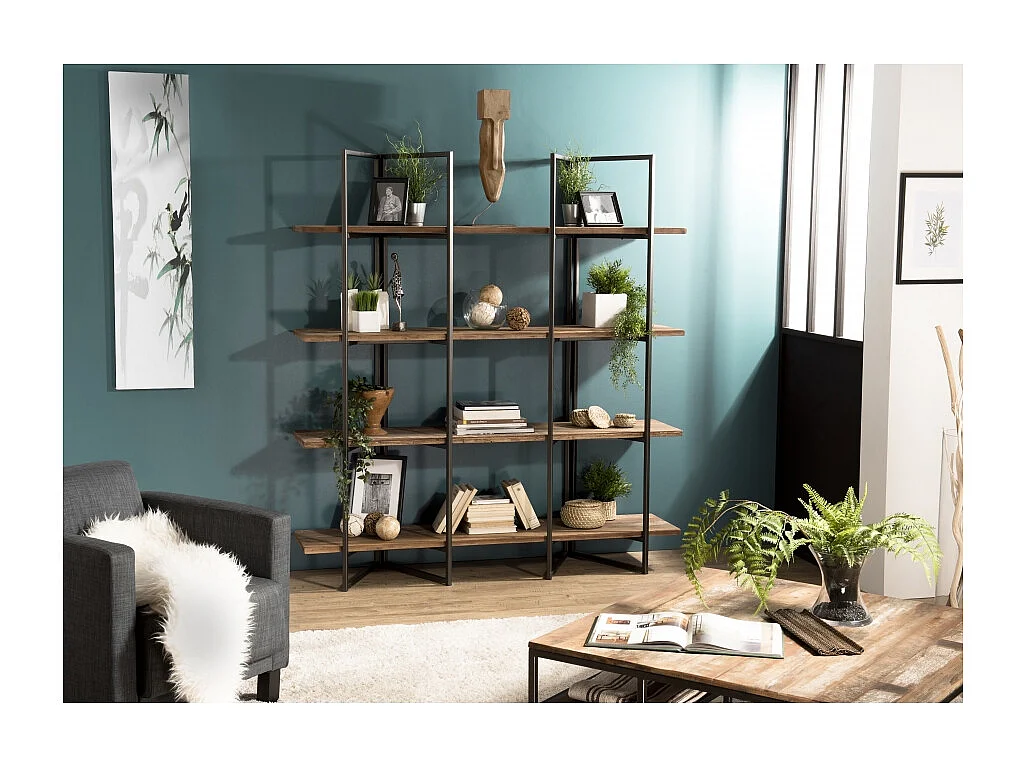 SIXTINE - Étagère marron 4 niveaux en bois de Teck recyclé
