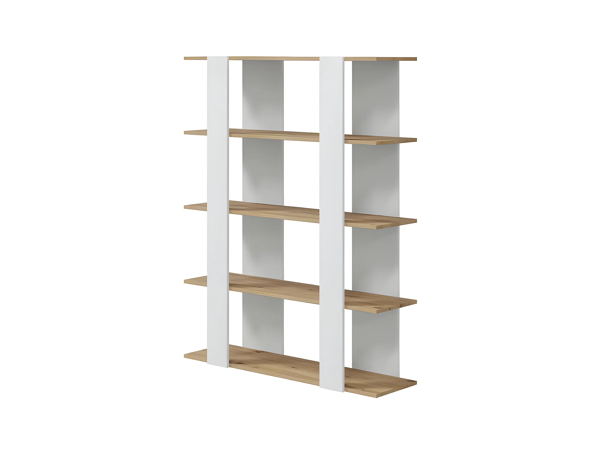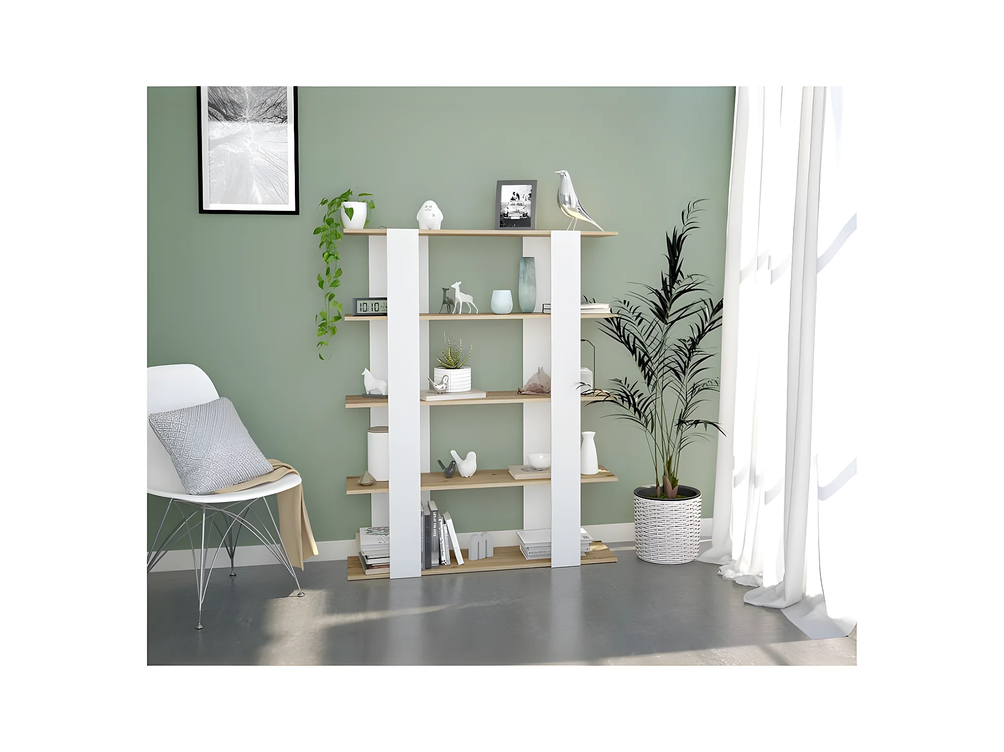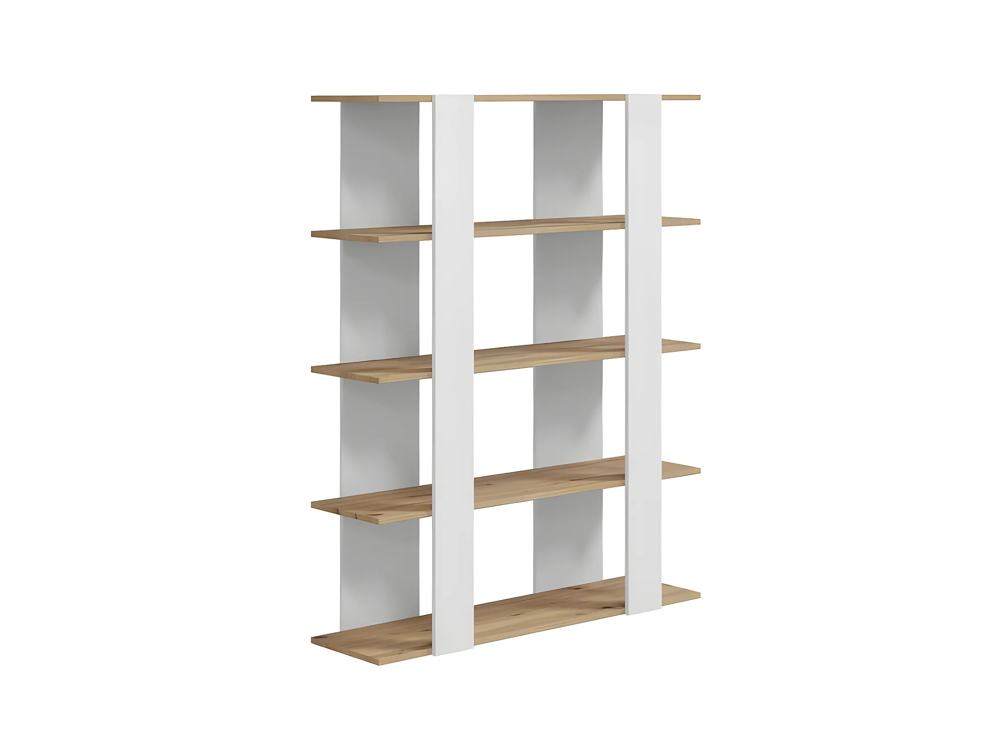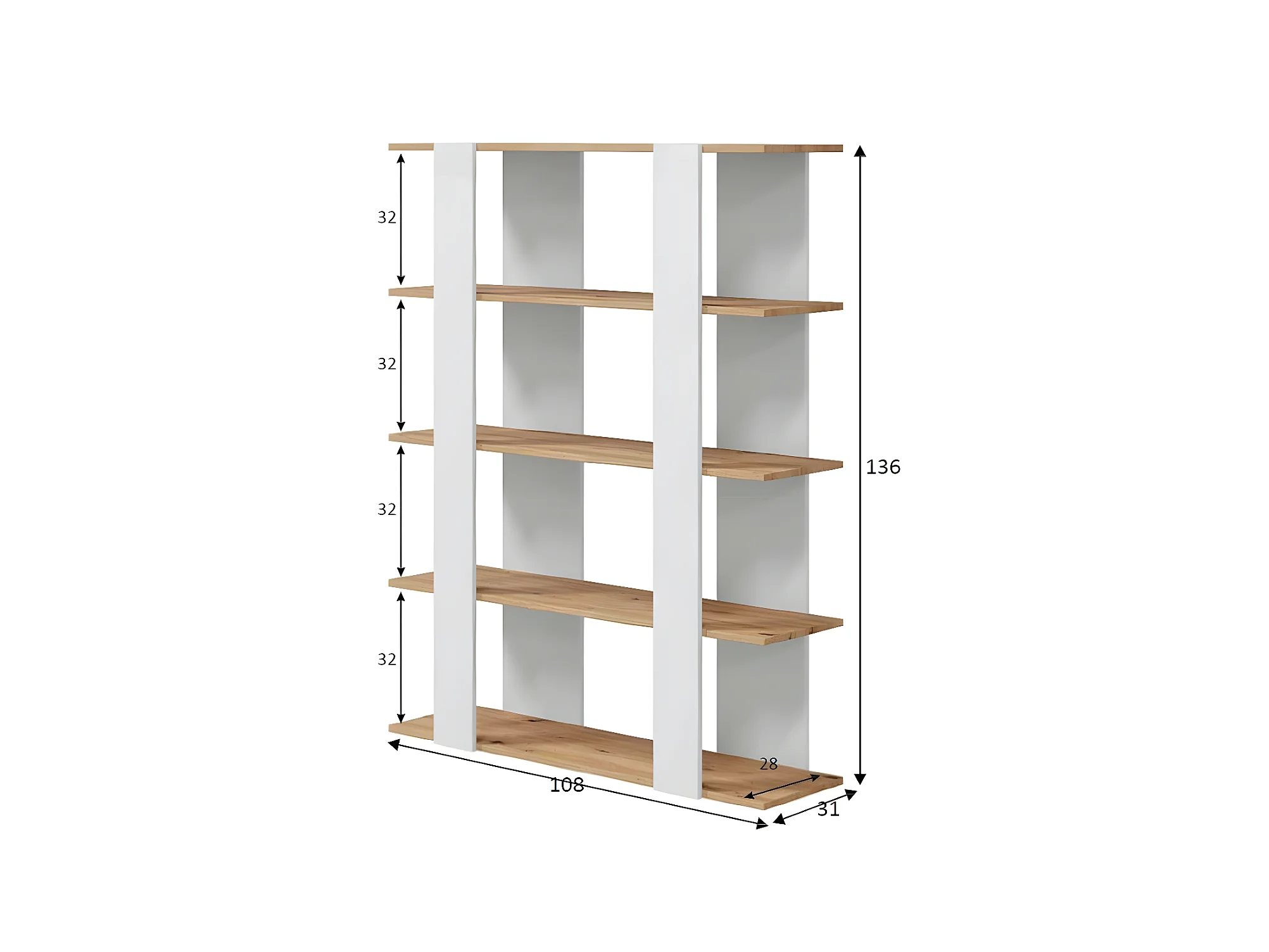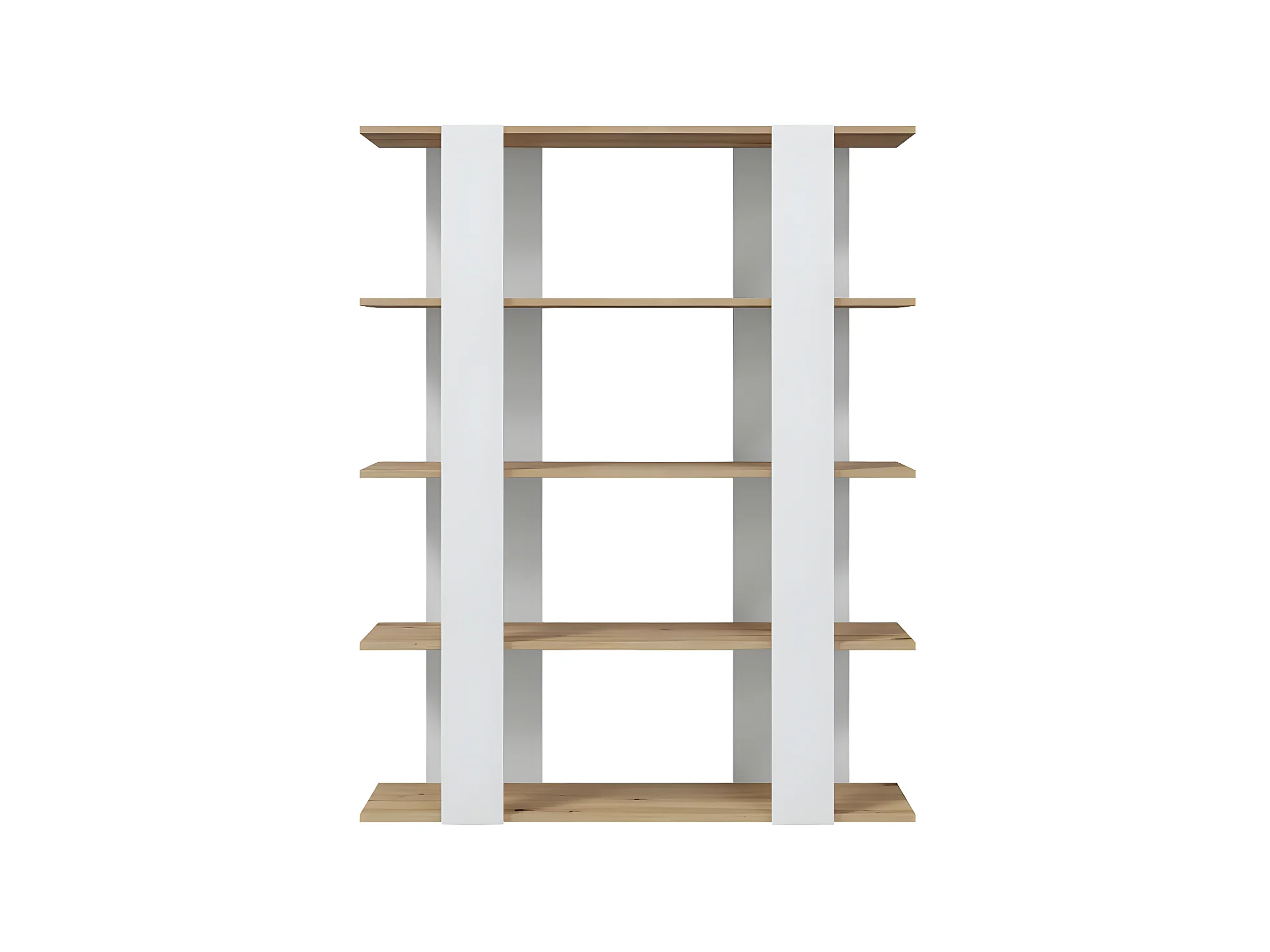 Étagère 5 niveaux Blanc Mat/Chêne - IDEAX - L 108 x l 31 x H 136 cm