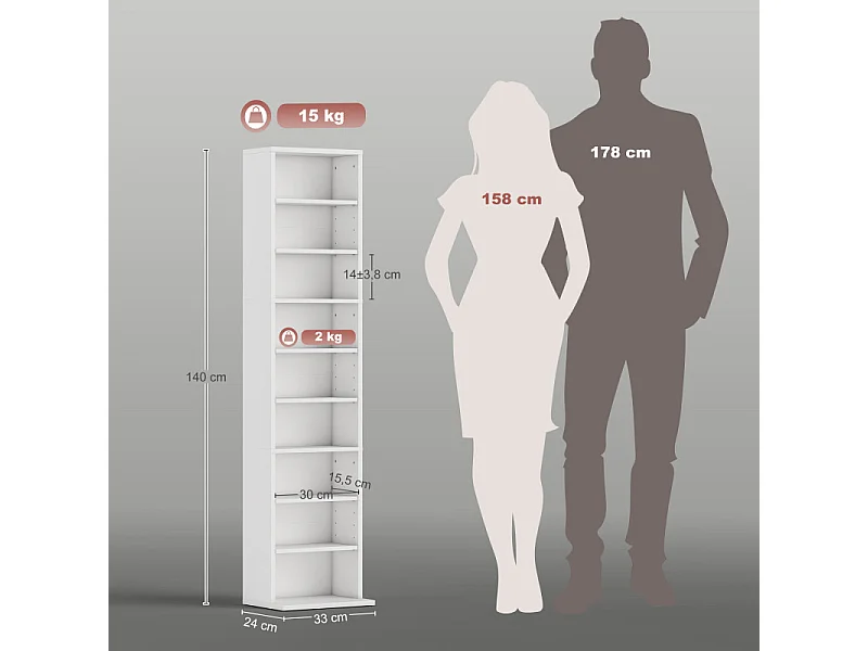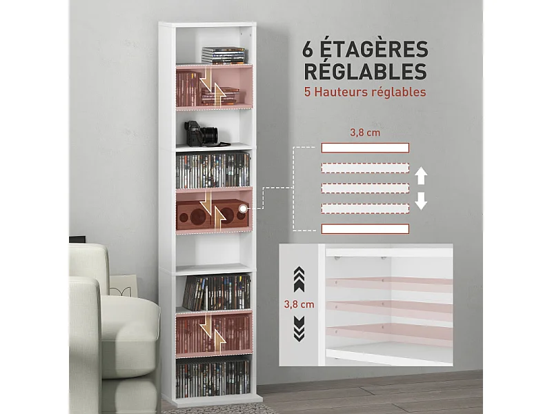 Bibliothèque / Étagère H. 198 x L. 54 cm décor blanc - MARIA