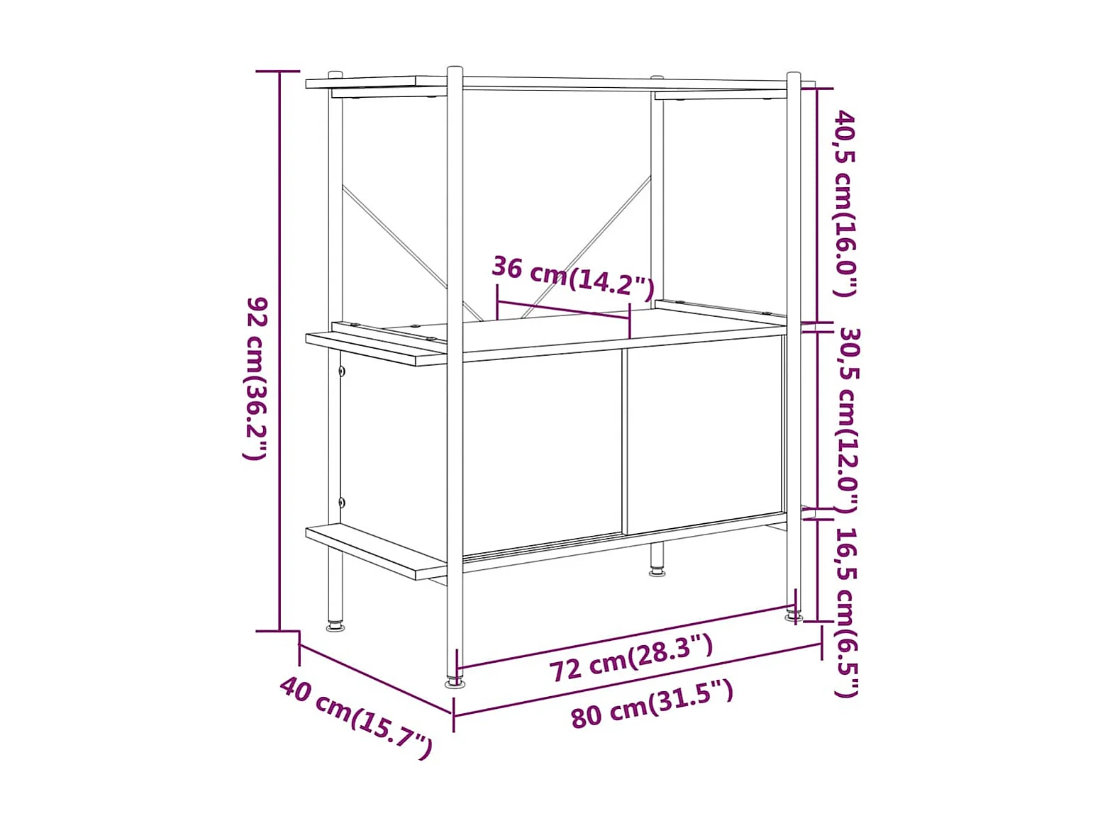 Étagère à 3 niveaux armoire 80x40x92 cm Acier bois d'ingénierie