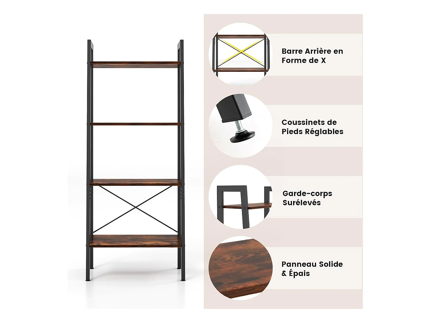 Étagère industrielle à 4 niveaux, avec crochets en forme de s, marron rustique