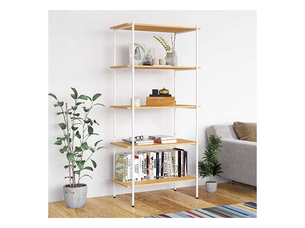 Étagère à 5 niveaux Blanc et chêne 80x40x163