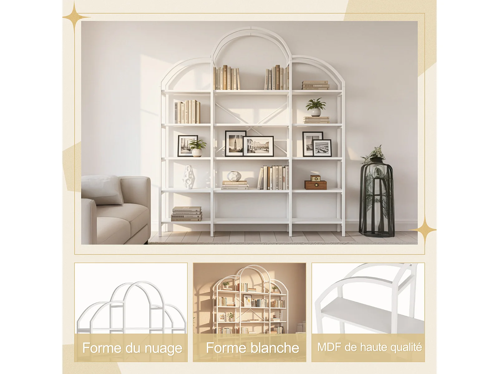 Étagère à 5 niveaux - design nuage unique - 170 x 26 x 190 cm - blanc