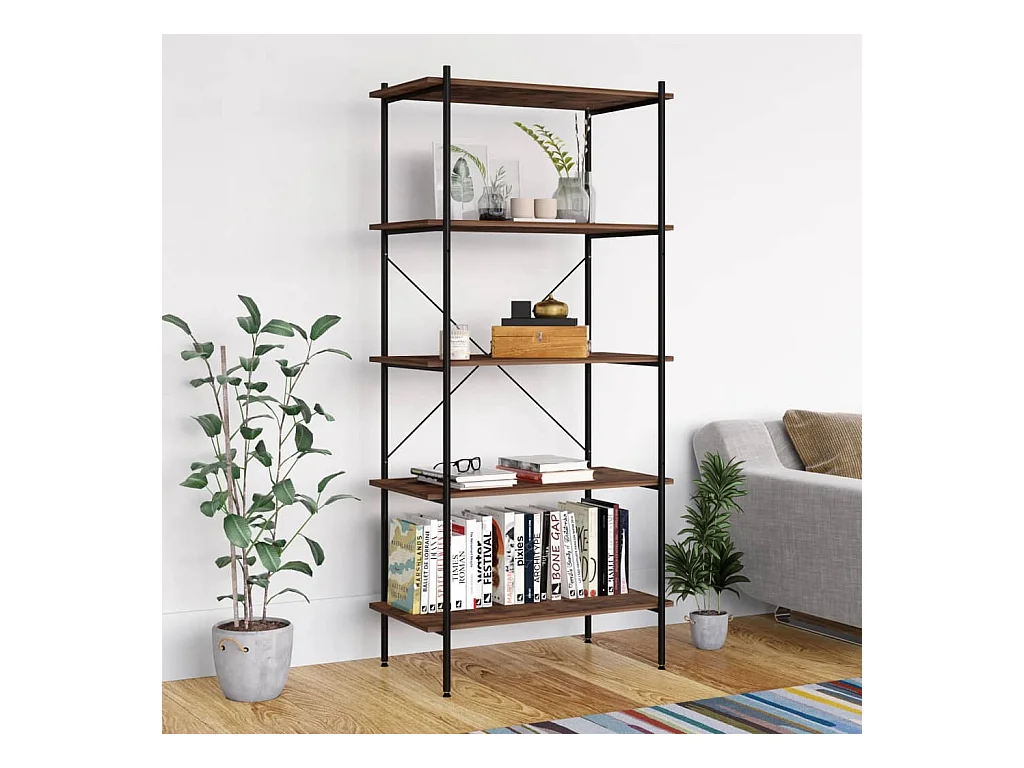 Étagère à 5 niveaux noir et naturel 80x40x163 cm