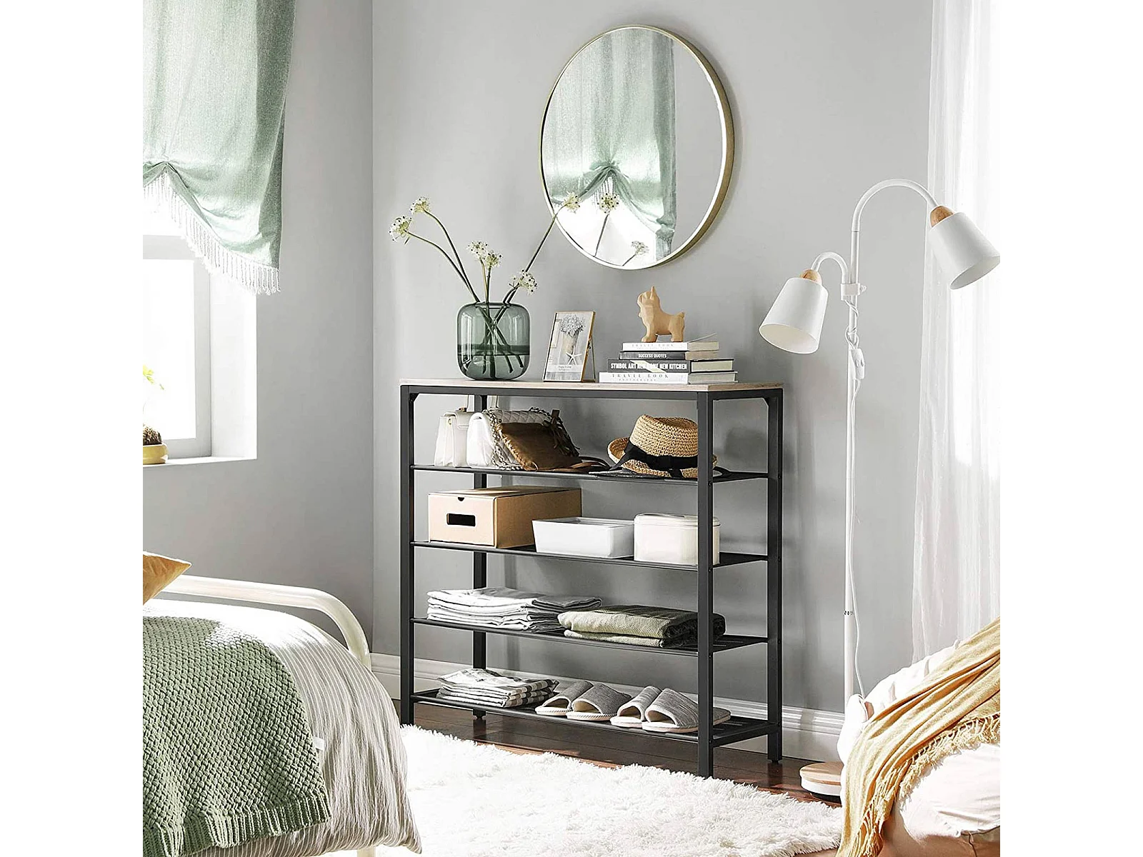 Étagère à chaussures 100x30x92,5 cm blanc noir Indestic