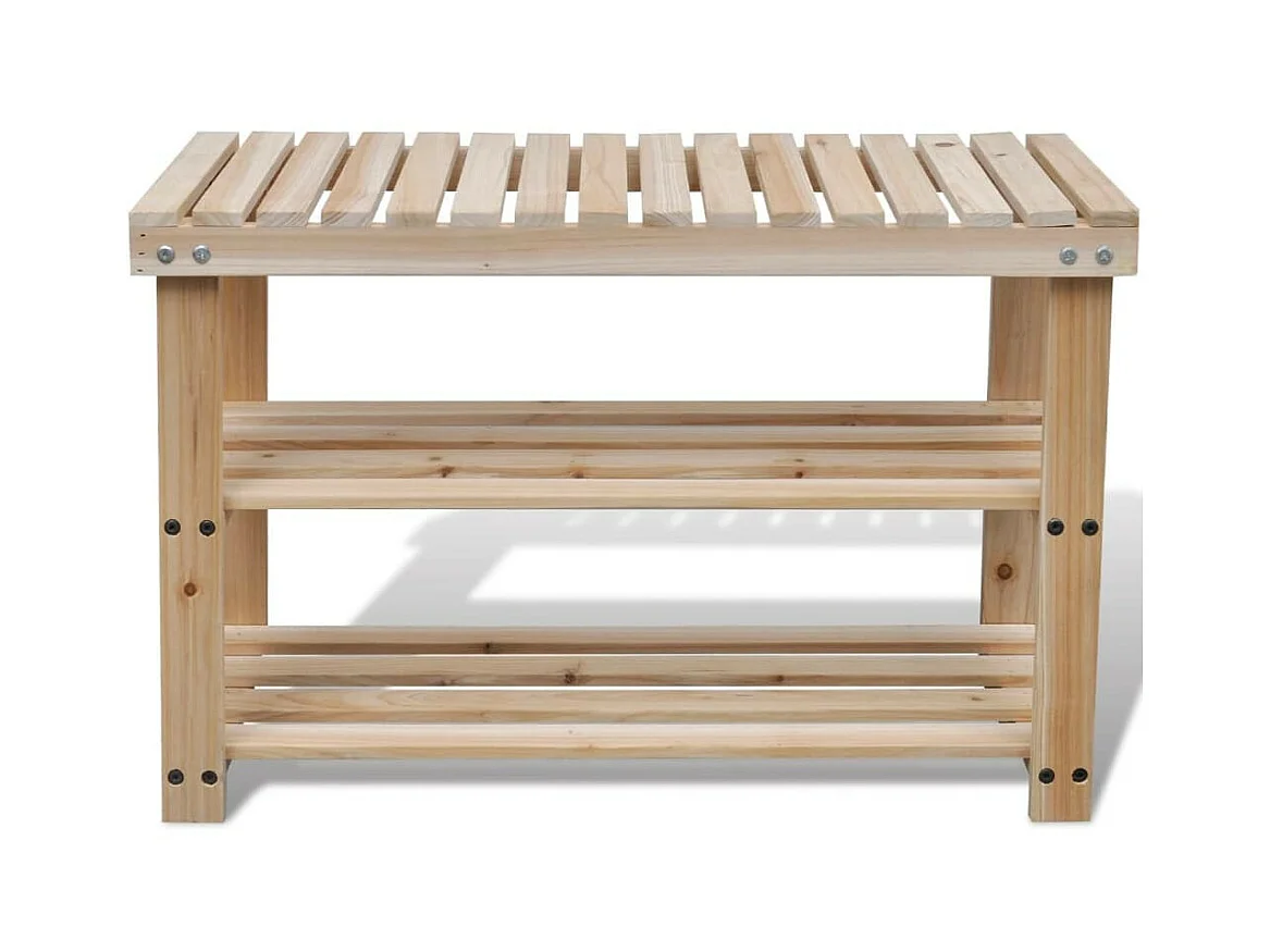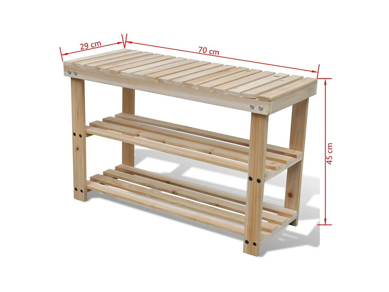 Étagère à chaussures 2 en 1 et dessus banc Bois de sapin massif