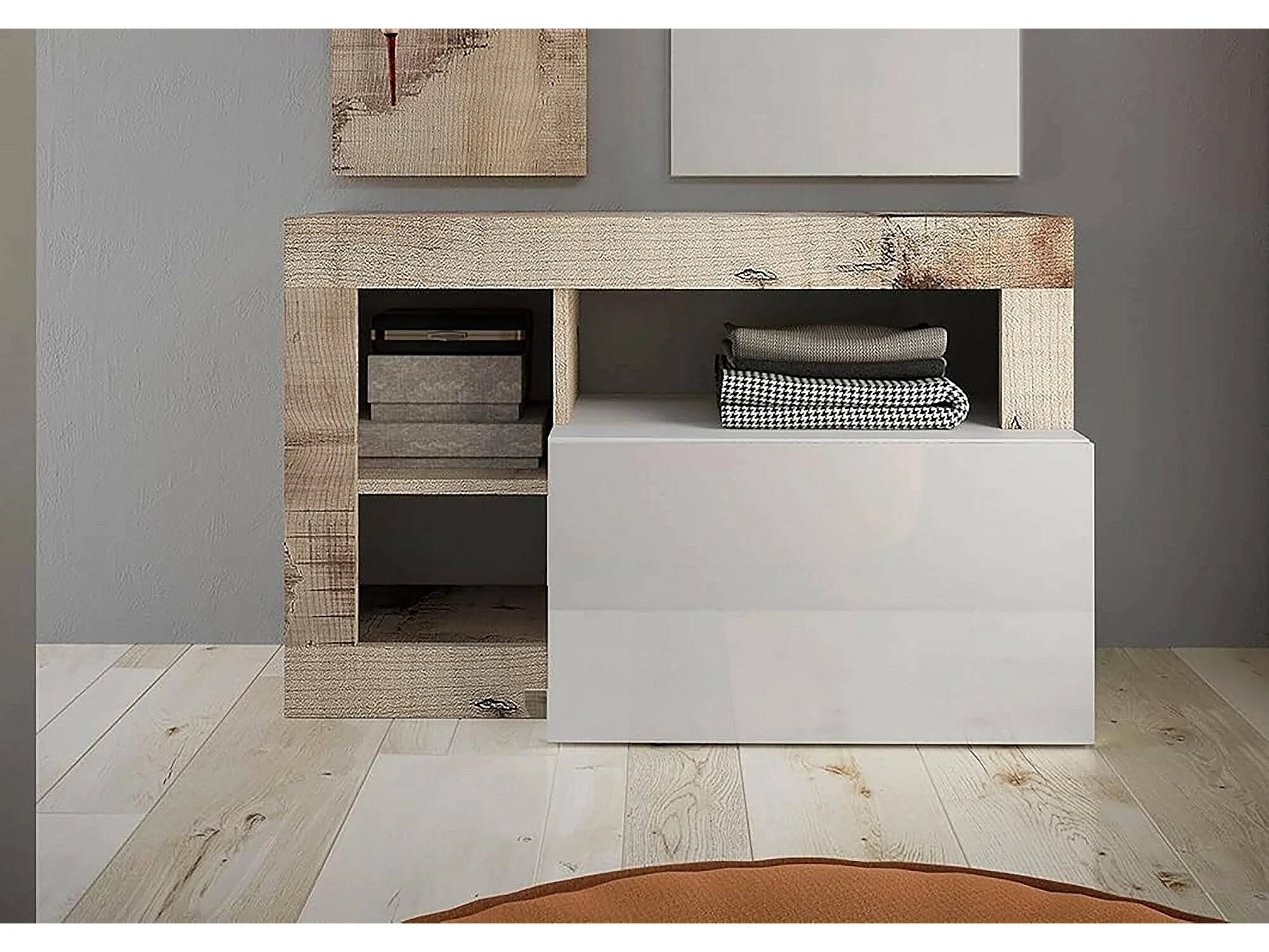 Étagère à Chaussures Adonide, 2 Niveaux Made in Italy, 35x91x58h cm Marron Acacia, Meuble à Chaussures