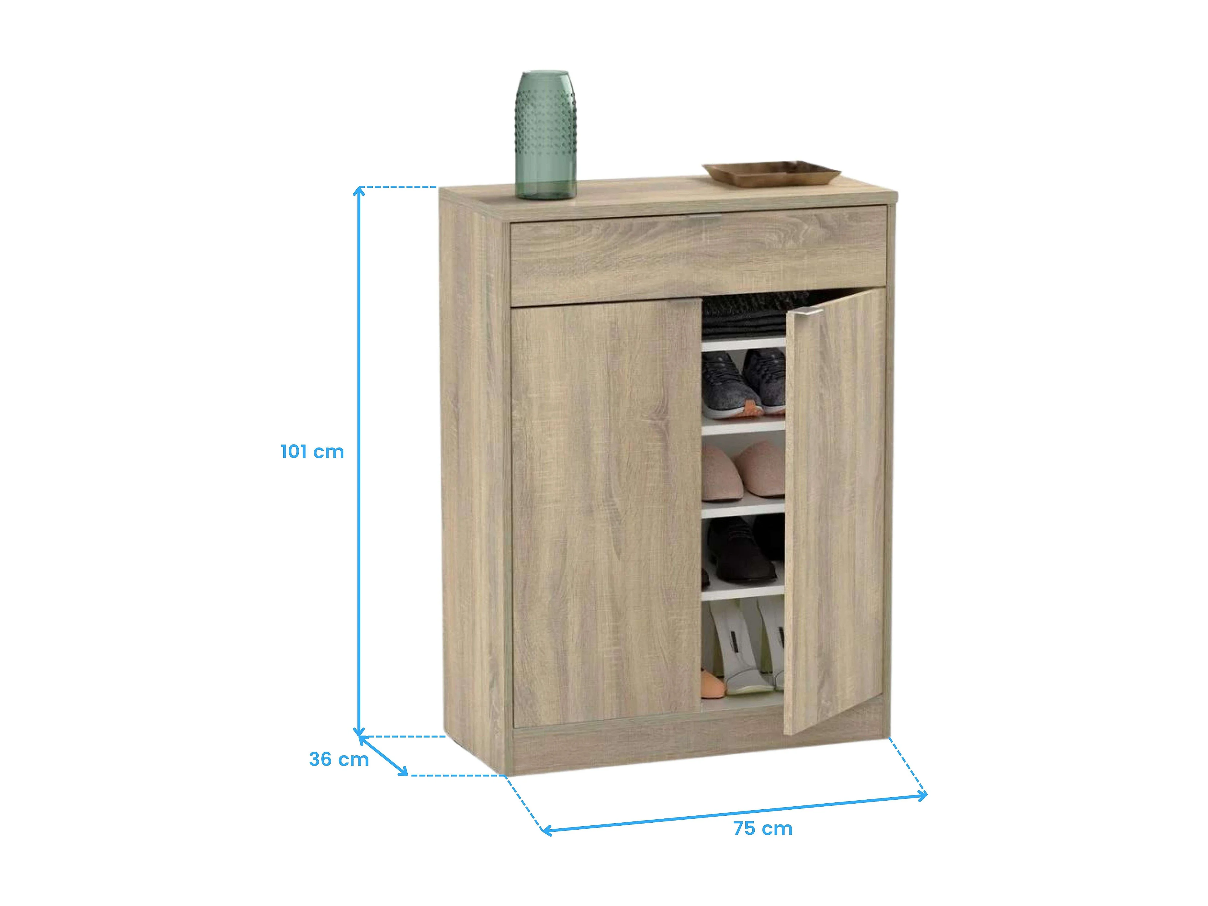 Étagère à chaussures Berlin Cambrian Oak avec 1 tiroir et 4 étagères 75 x 101 x 37 cm