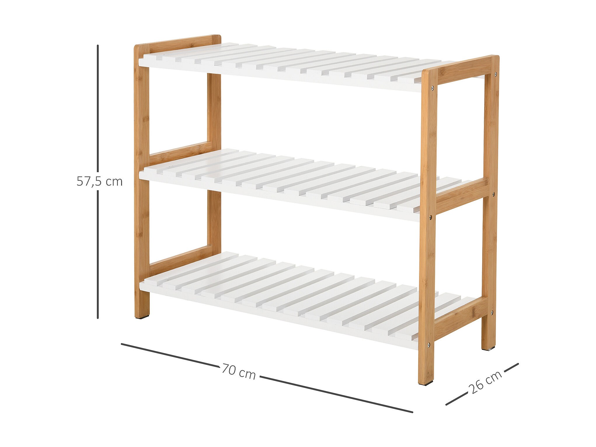 Etagère à chaussures, étagère de rangement, meuble chaussures 3 niveaux bambou MDF blanc