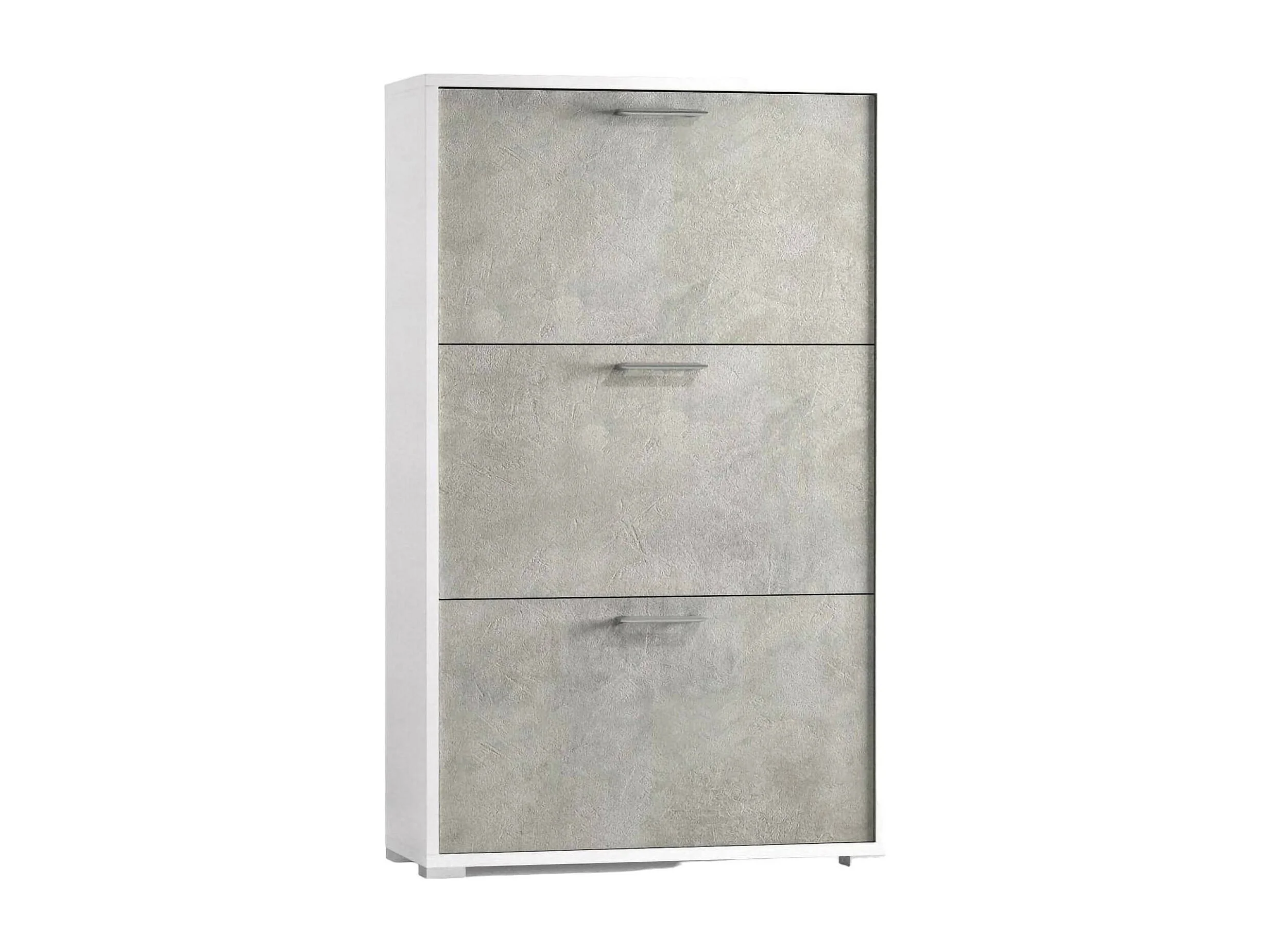 Étagère à chaussures Iris, meuble d'entrée polyvalent avec 3 portes pliantes, meuble à chaussures moderne, 100% Made in Italy, 67x18h112 cm, Blanc et Ciment