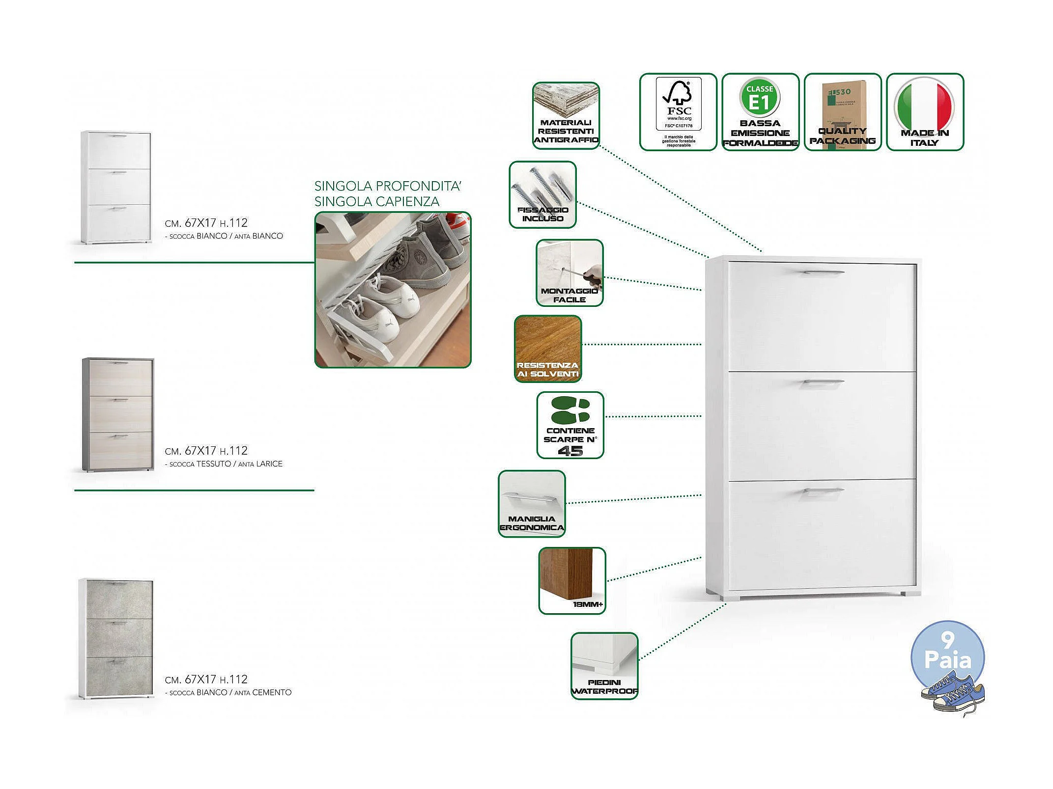 Étagère à chaussures Iris, Meuble d'entrée polyvalent avec 3 portes pliantes, Meuble à chaussures moderne, 100% Made in Italy, 67x18h112 cm, Mélèze