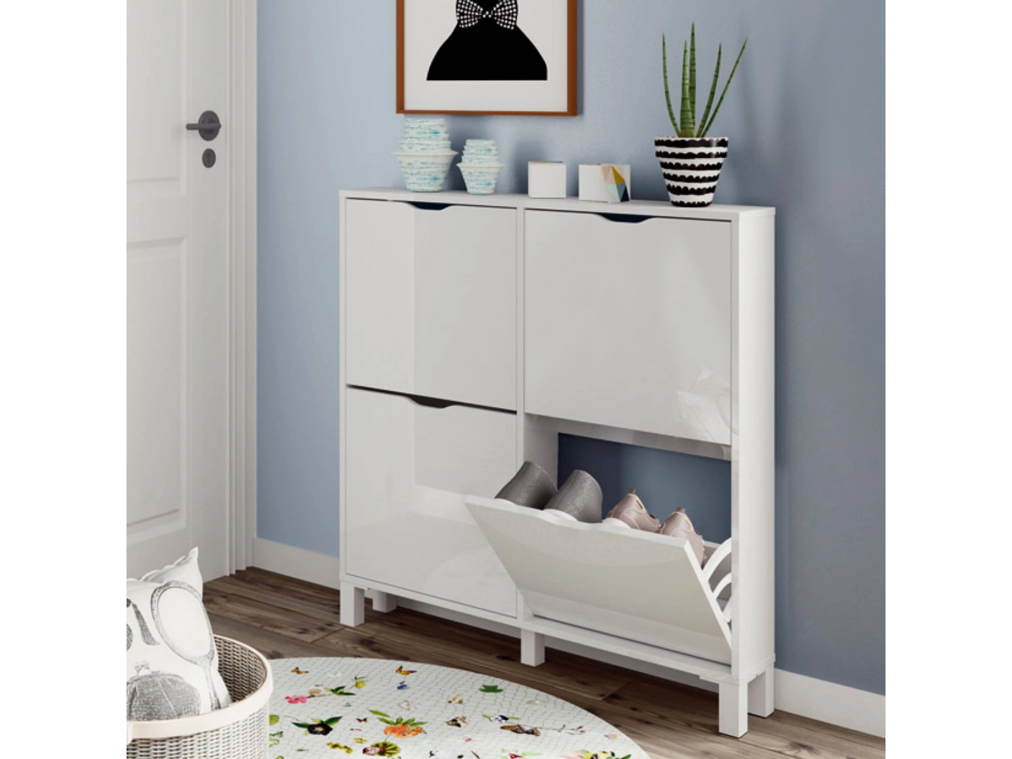 Étagère à chaussures Mary Narrow blanche pour couloir, 97 x 98 x 17 cm
