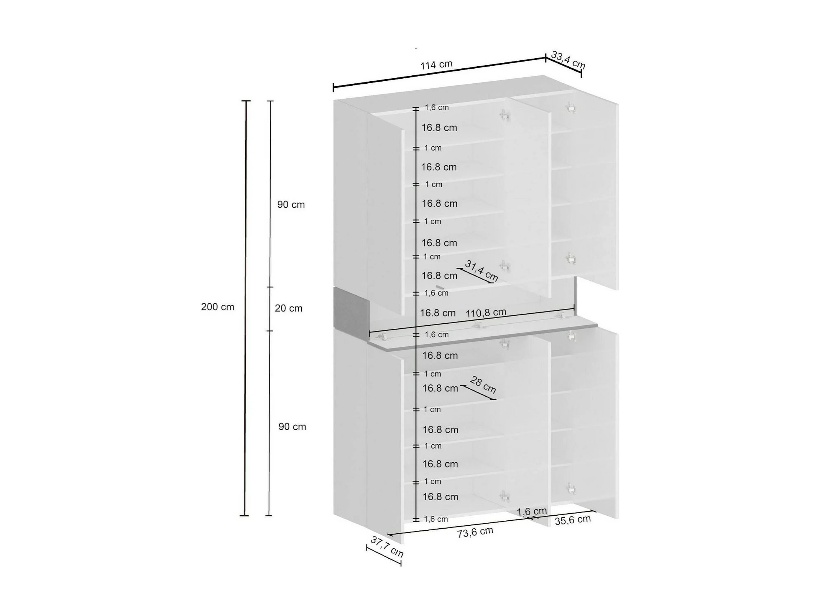 Étagère à chaussures Marzio, meuble à chaussures peu encombrant à 7 portes, armoire d'entrée multifonctionnelle, 114x38h200 cm, effet mélèze blanc