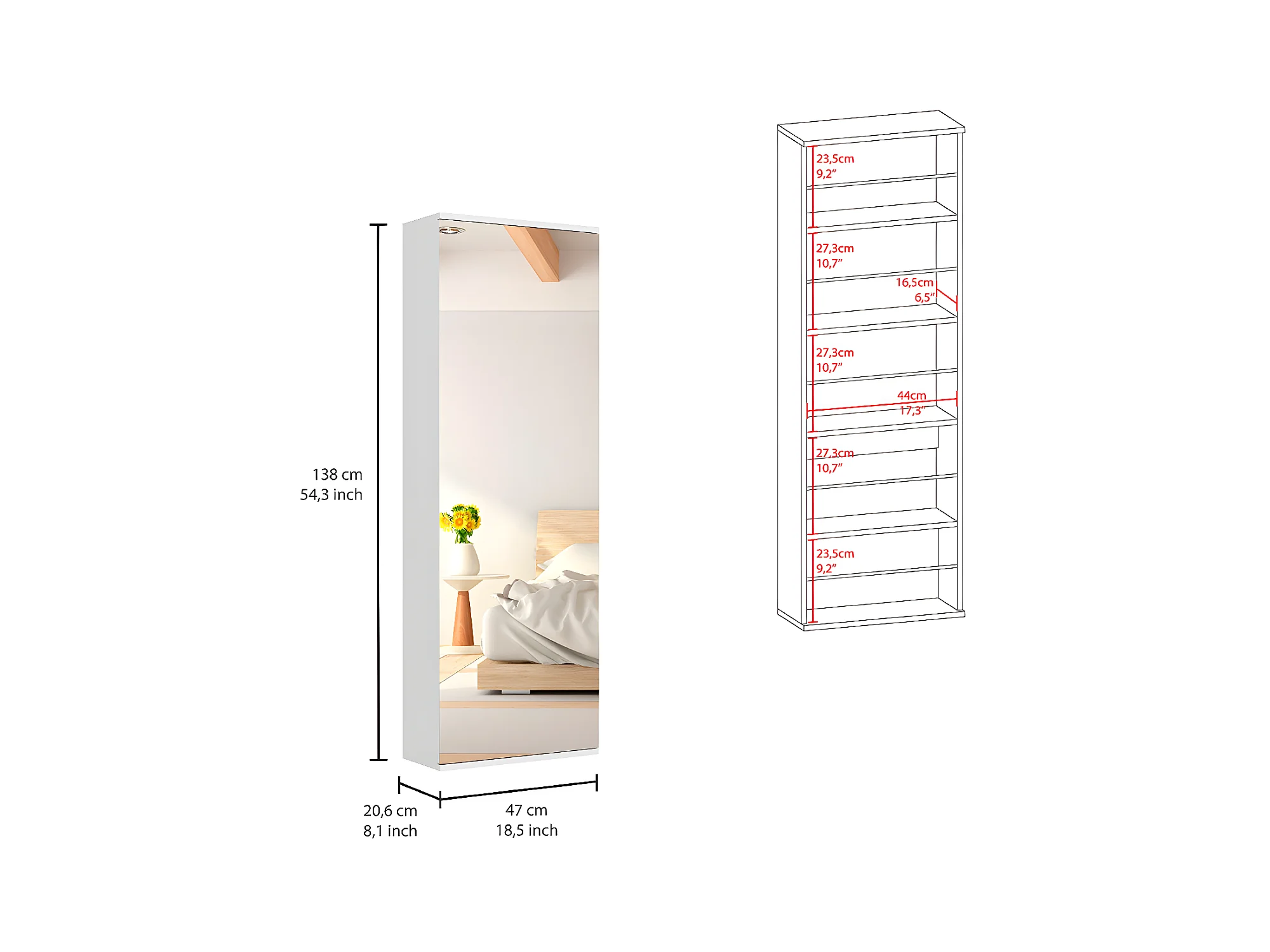 Leto Porte chaussures mural en mélamine, avec miroir , 137.92 cm X 46.99 cm X 20.57 cm , Gris / argenté