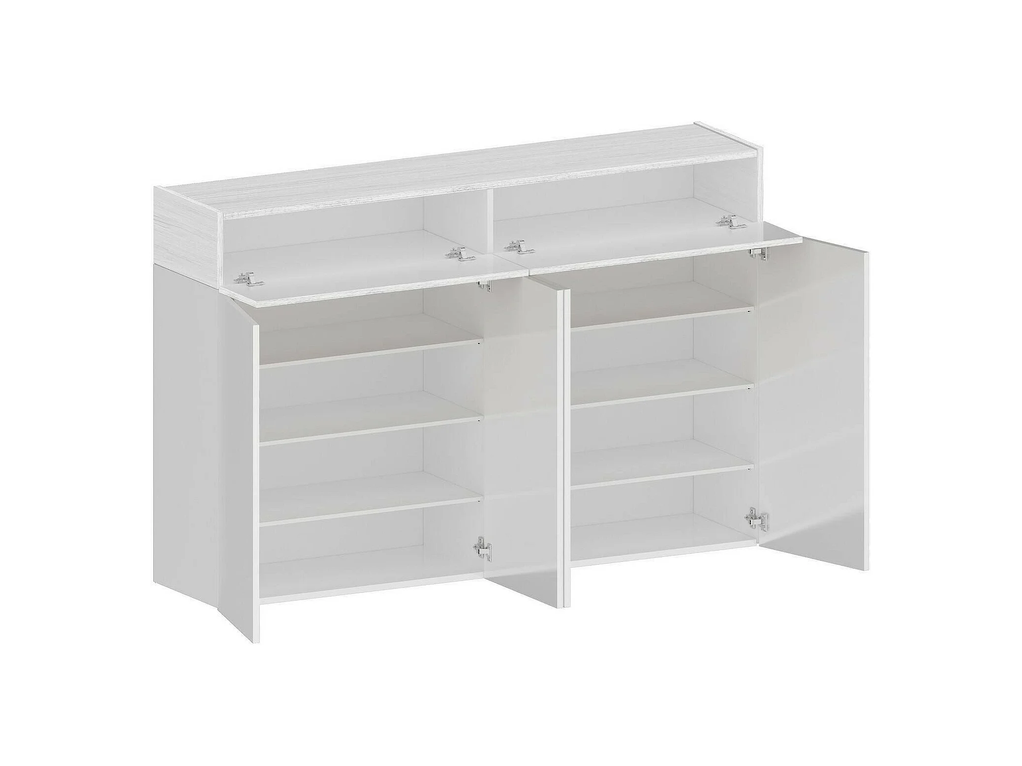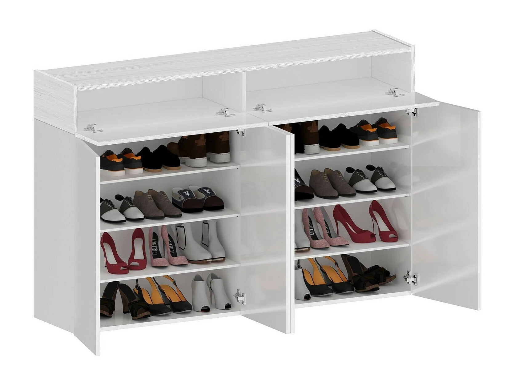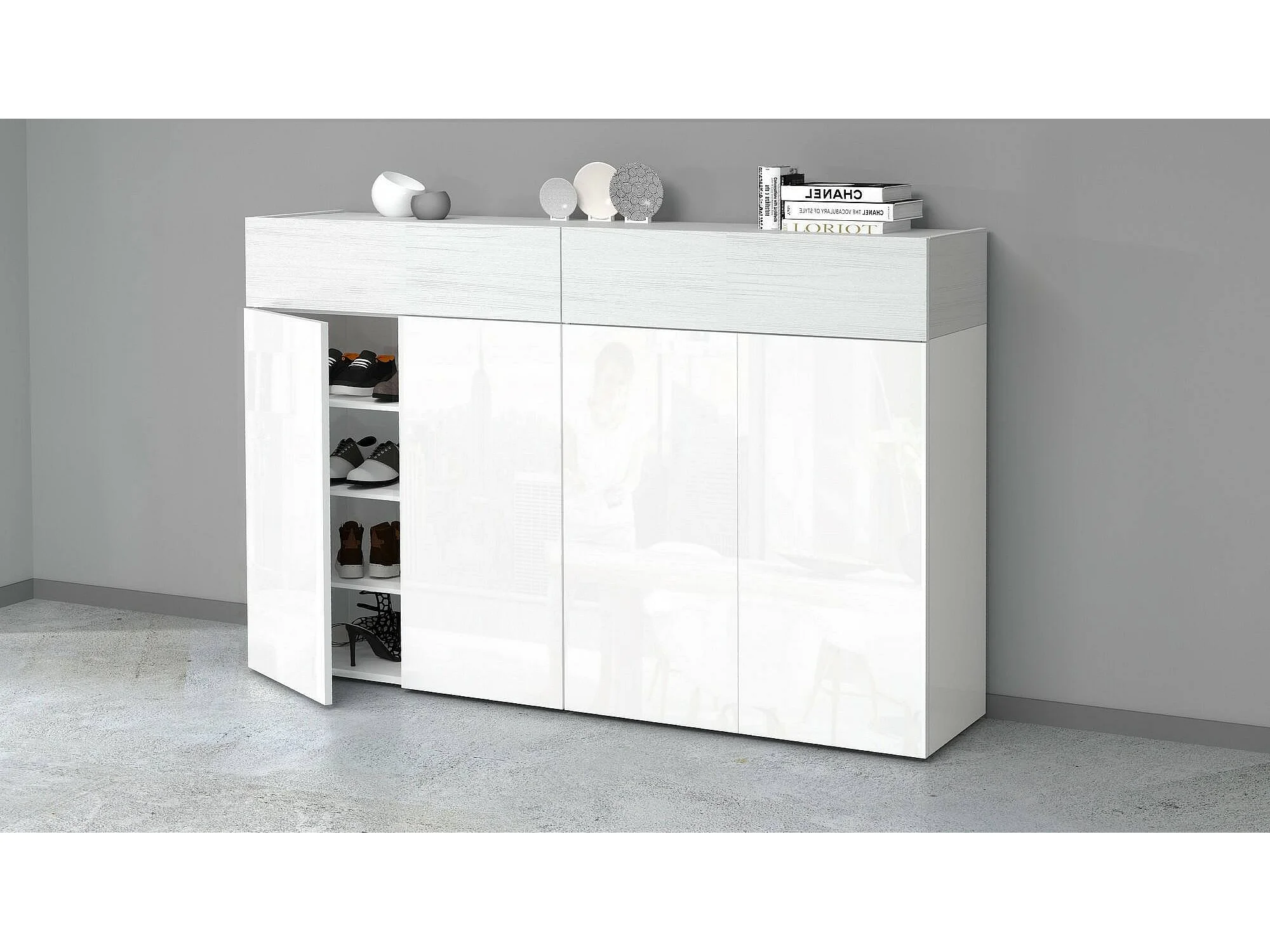 Étagère à chaussures Nadir, meuble à chaussures gain de place 6 portes, armoire d'entrée multifonctionnelle, 154x38h100 cm, effet mélèze blanc