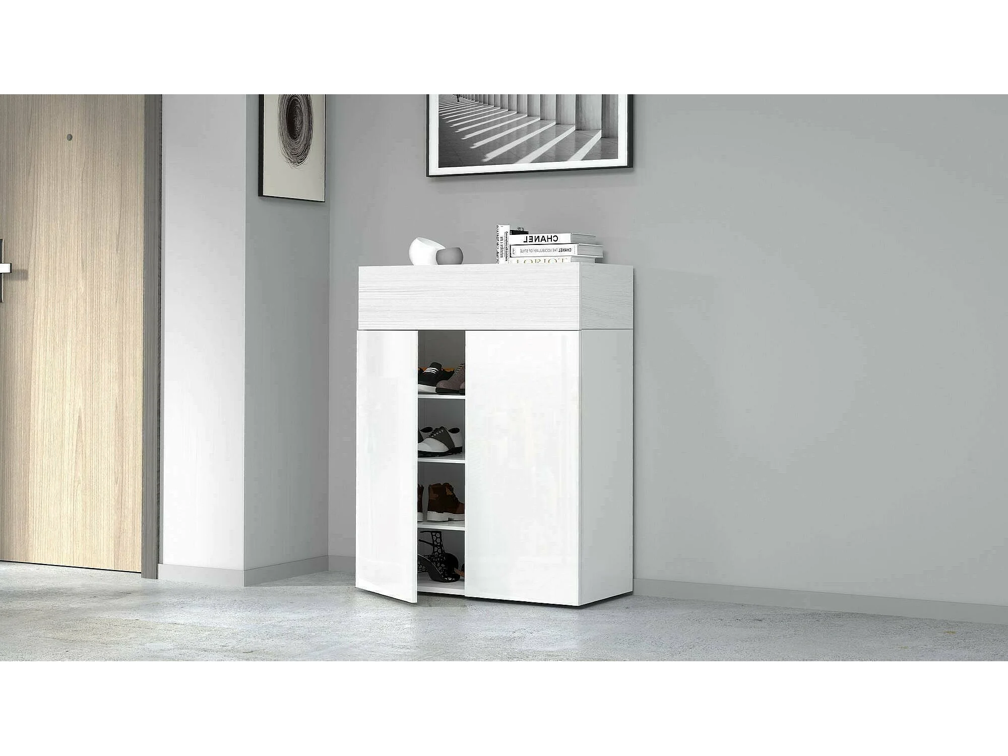 Étagère à chaussures Oliviero, meuble à chaussures peu encombrant à 3 portes, armoire d'entrée multifonctionnelle, 76x38h100 cm, effet mélèze blanc