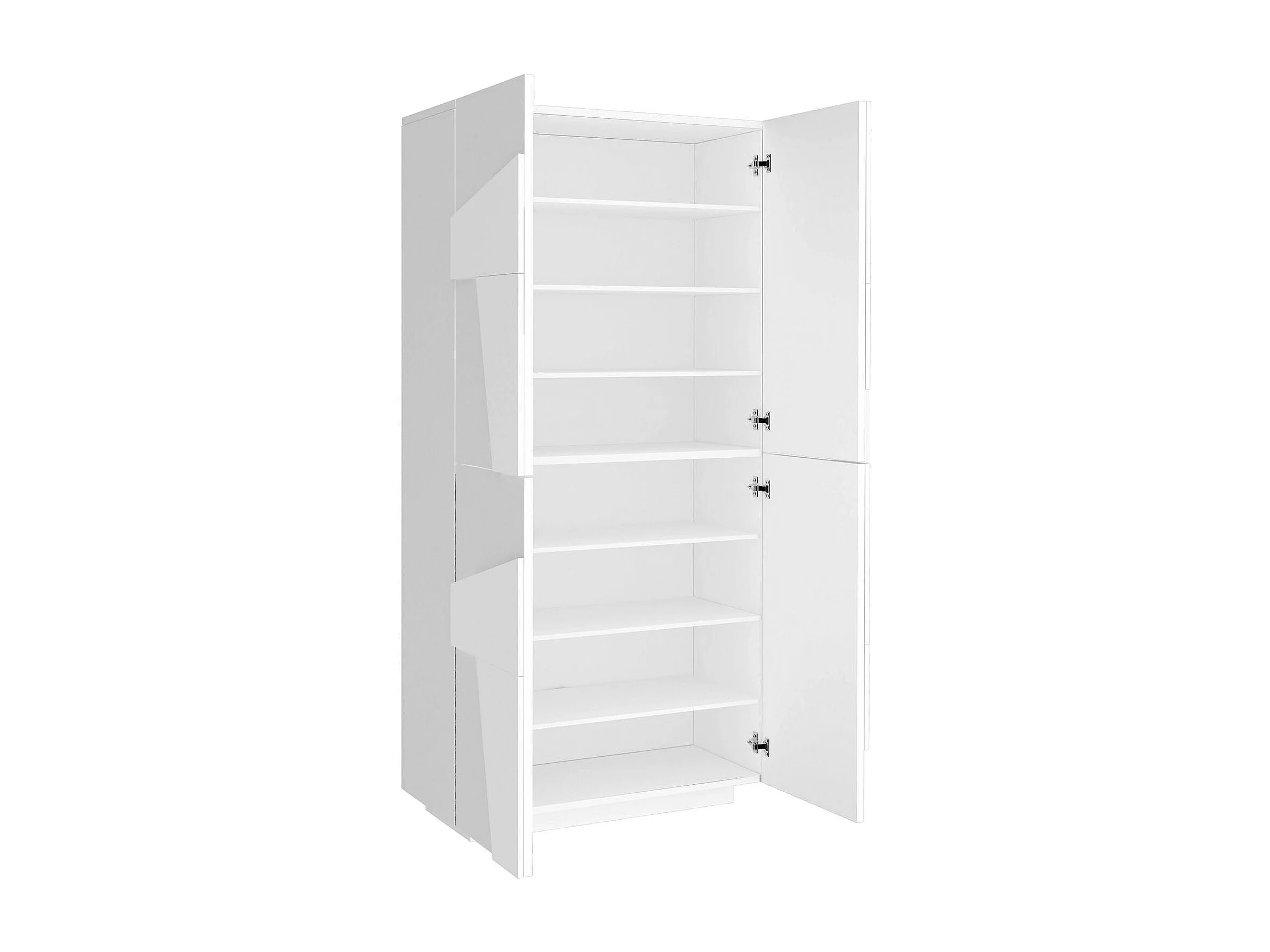 Étagère à chaussures Orfeo, Armoire polyvalente avec 4 portes battantes, Étagère à chaussures d'entrée, 100% Made in Italy, 81x38h167 cm, Blanc brillant