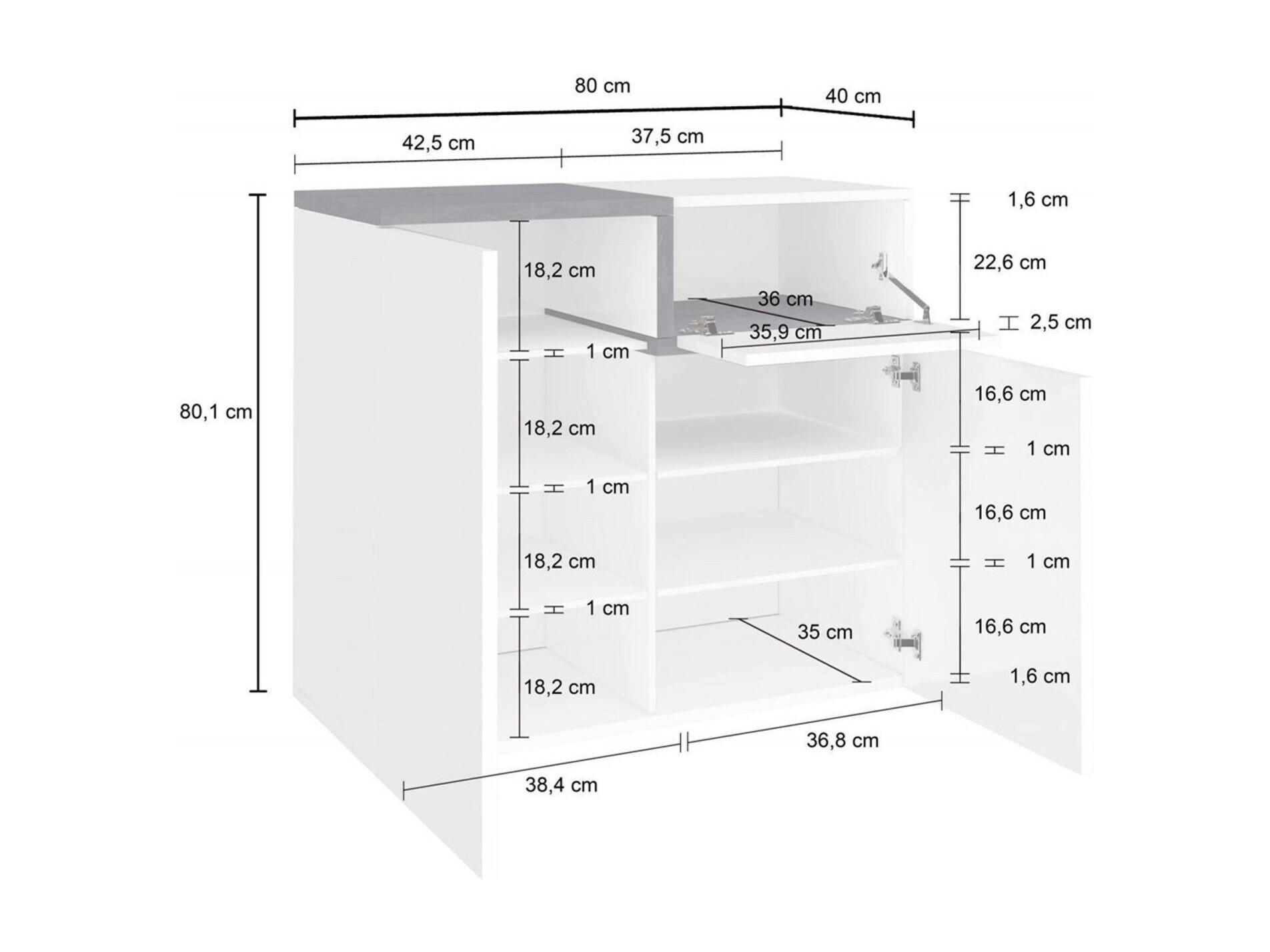 Dmora Modernes Schuhregal, Made in Italy, mit 2 Türen und 1 Klapptür, Eingangsschuhregal, Mehrzweckschrank, 80x40h80 cm, Weiß glänzend und Schiefergrau