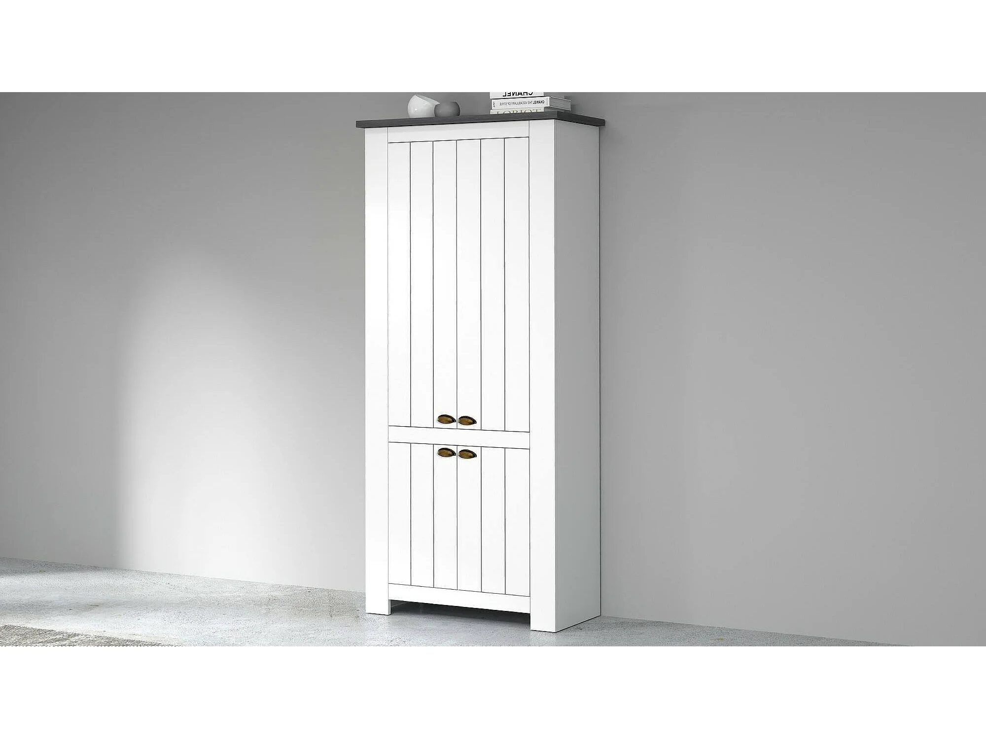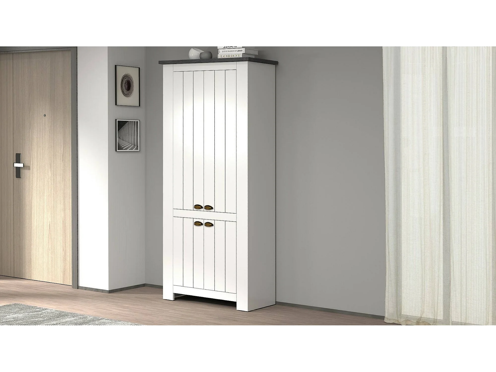 Étagère à chaussures Teodoro, étagère à chaussures peu encombrante avec 4 portes, armoire d'entrée multifonctionnelle, 84x42h200 cm, Blanc et Ardoise