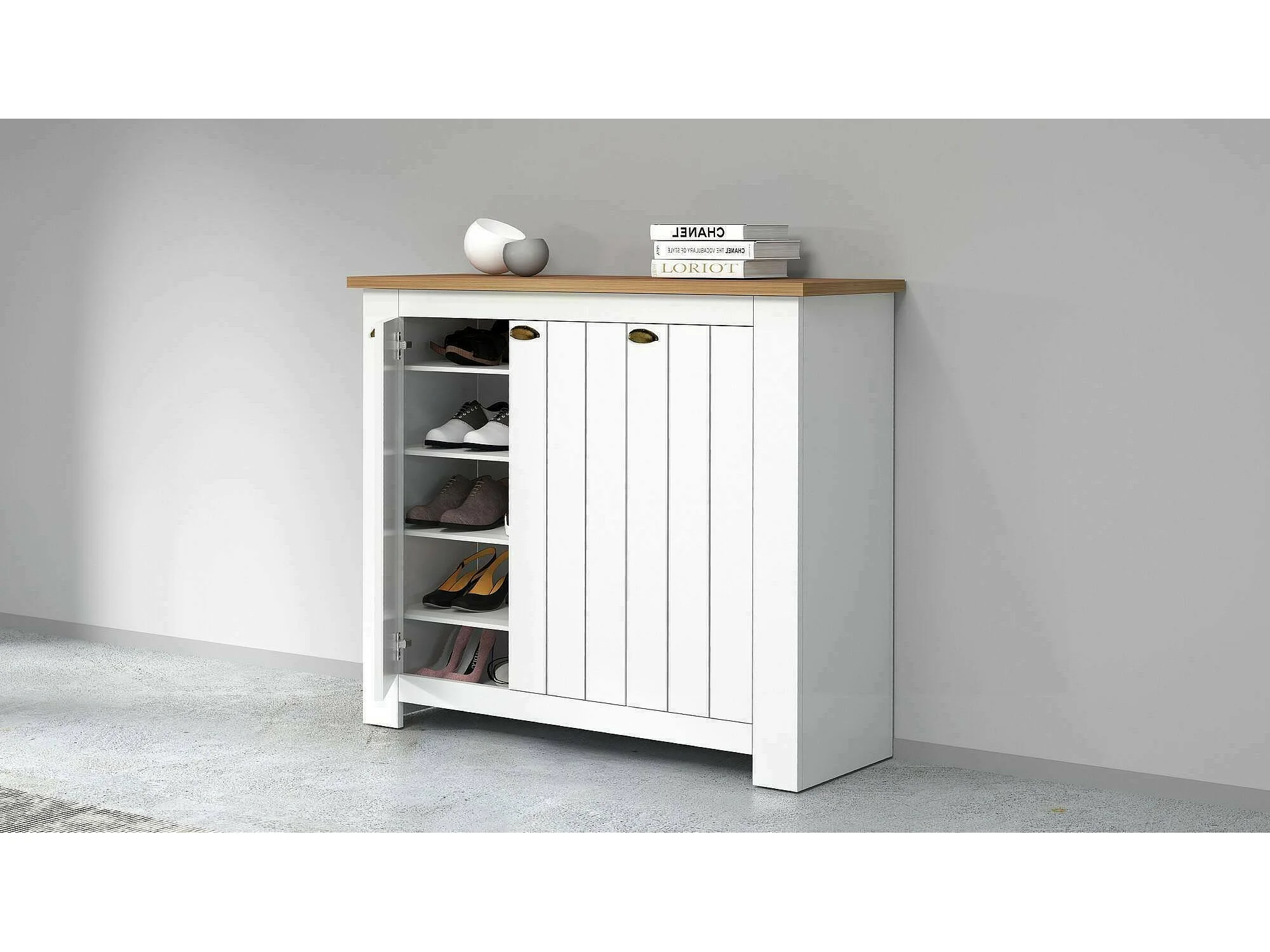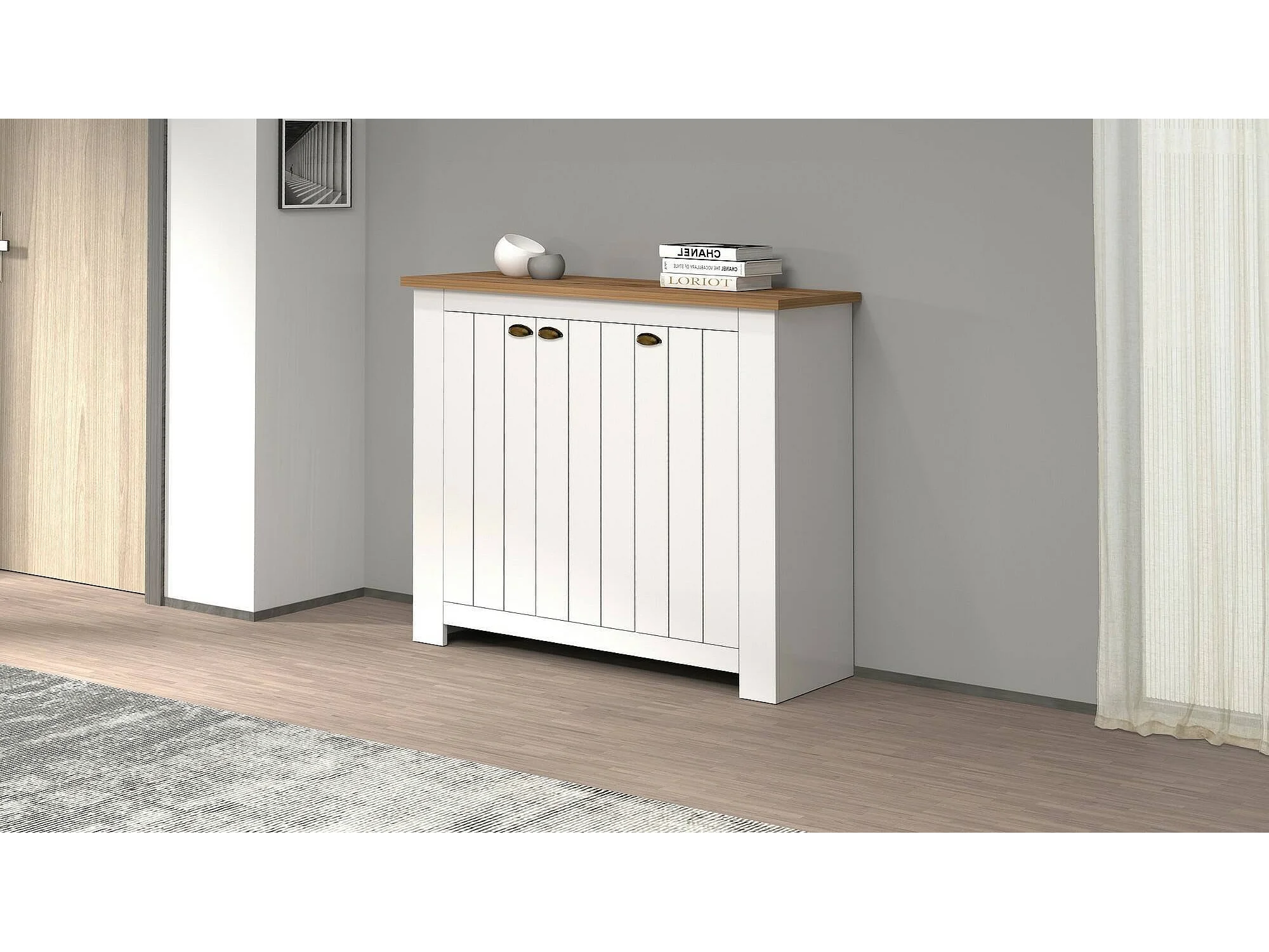 Étagère à chaussures Tolomeo, étagère à chaussures peu encombrante avec 3 portes, armoire d'entrée multifonctionnelle, 114x42h100 cm, Blanc et Chêne